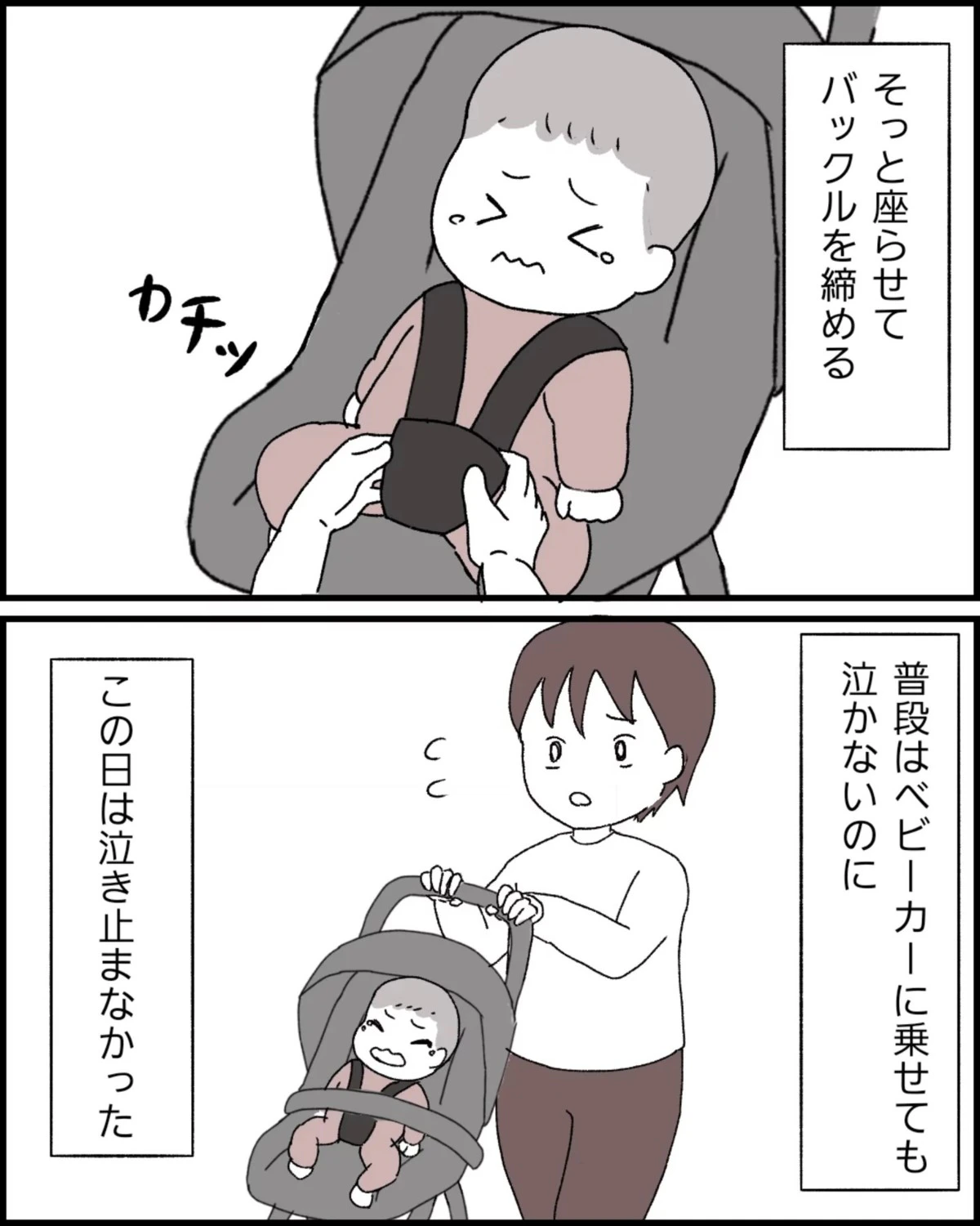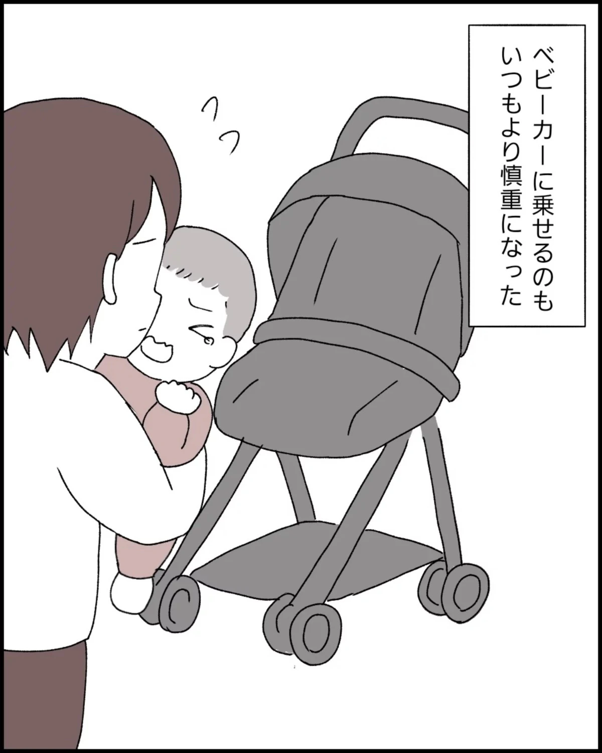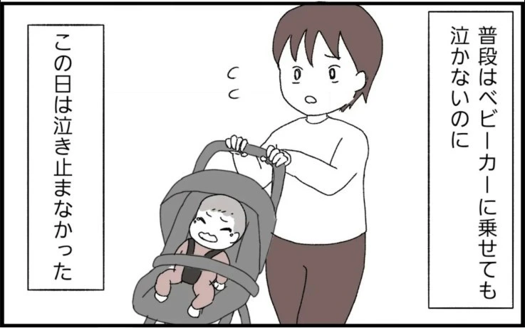 普段はベビーカーに乗せても泣かないのに、この日のぷくちゃんはいつもとようすが違いました。そんな娘を慎重に病院へ連れて行くことに。