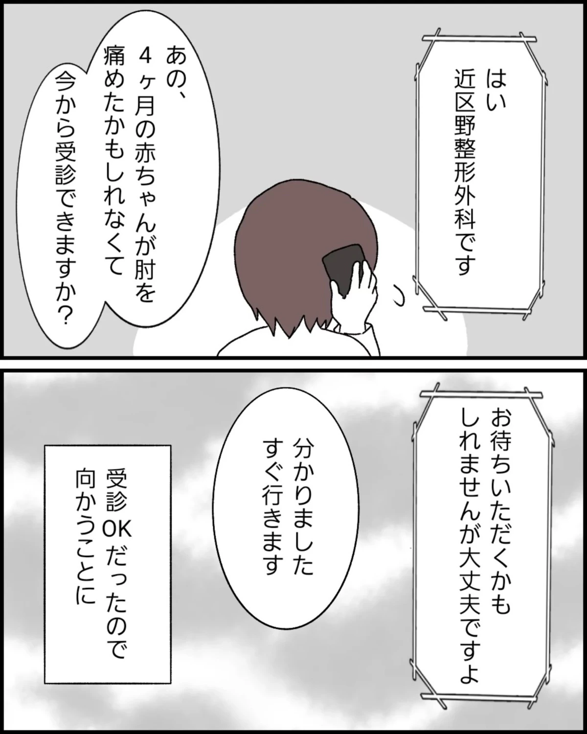 なっぽさんは、家の近くの整形外科へ電話をしました。赤ちゃんも診てくれると言われ、そこへ行くことにします。