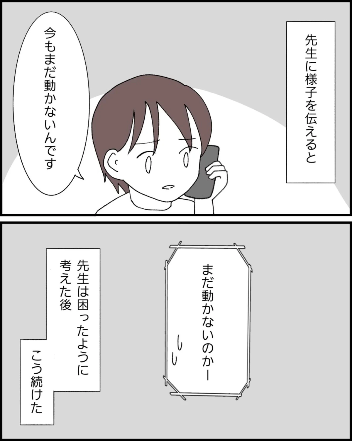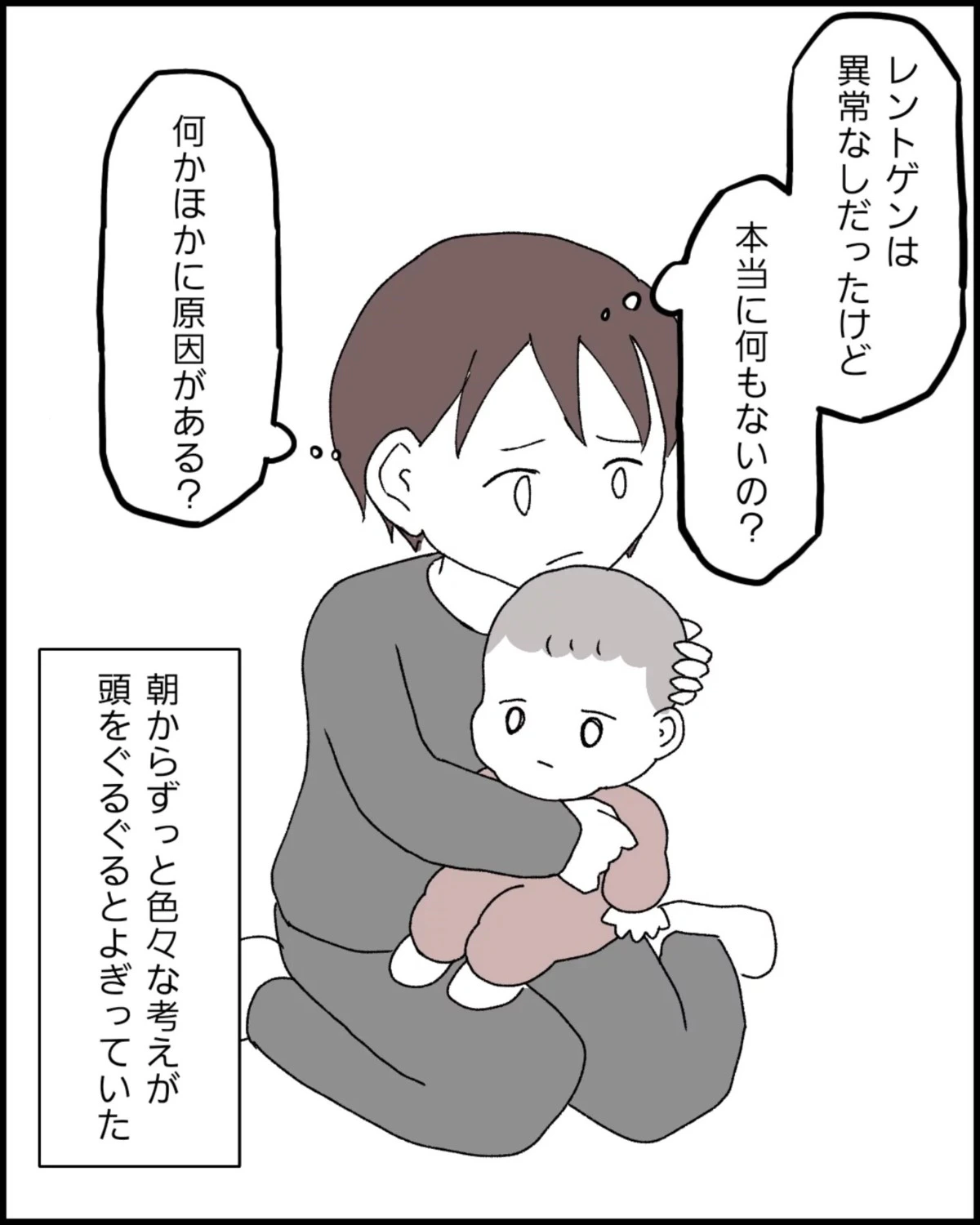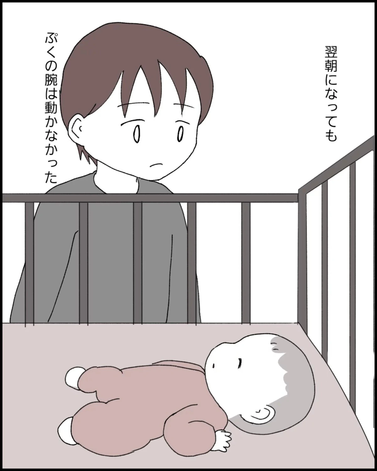 娘の腕が動かないままで不安な気持ちのなっぽさん。どうしてなのか、理由を考えても答えがでません。