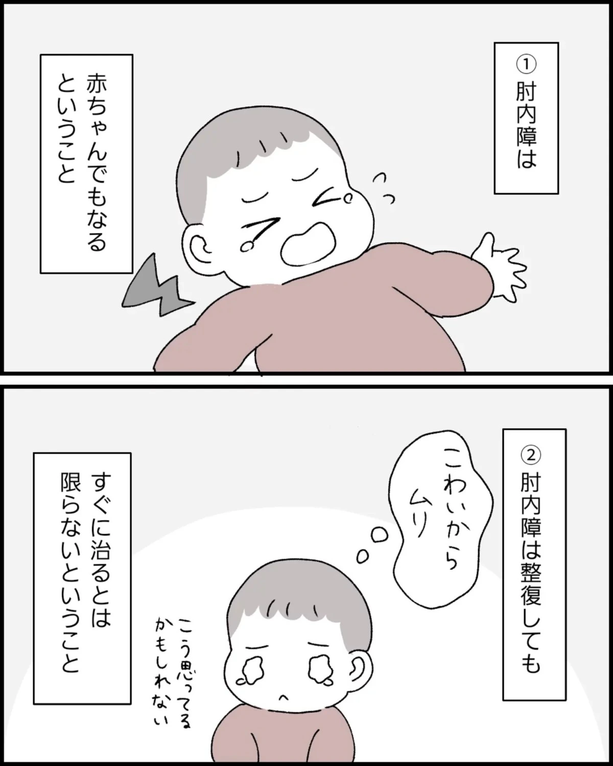 そこでセカンドオピニオンとして別の整形外科を受診することに。診断は同じく「肘内障」でしたが説明や対応は最初の医師とはまったく異なり、その丁寧さに大きな衝撃を受けたといいます。処置自体は間違っていなかったものの、医師による対応の違いになっぽさんは考えさせられました。