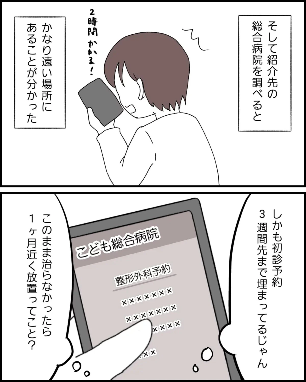 この病院の対応に、もうここへ行かないと決めたなっぽさん。ちなみに、医師が紹介しようとしている病院は、家から遠い場所にあり、さらに初診まで3週間以上は待たなければいけないことがわかりました。