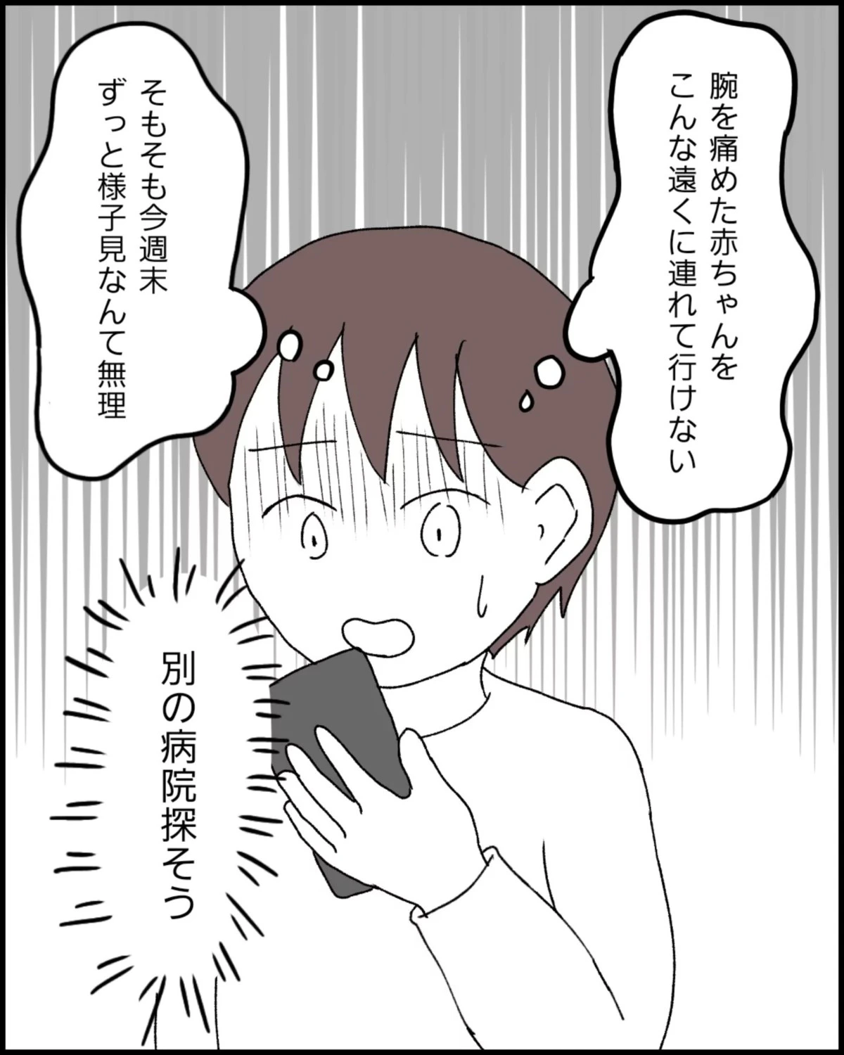 娘の腕のようすを電話で伝えると、3日後に来院するように言われたなっぽさん。「ようすを見て」というばかりの対応に疑問を持ちはじめます。