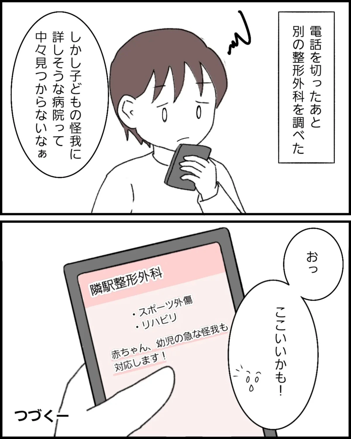 なっぽさん、娘のためにも別の病院に行くことにしました。赤ちゃんの怪我にも対応してくれる整形外科が見つかったようです。ここでの対応は安心できるものだといいですね。