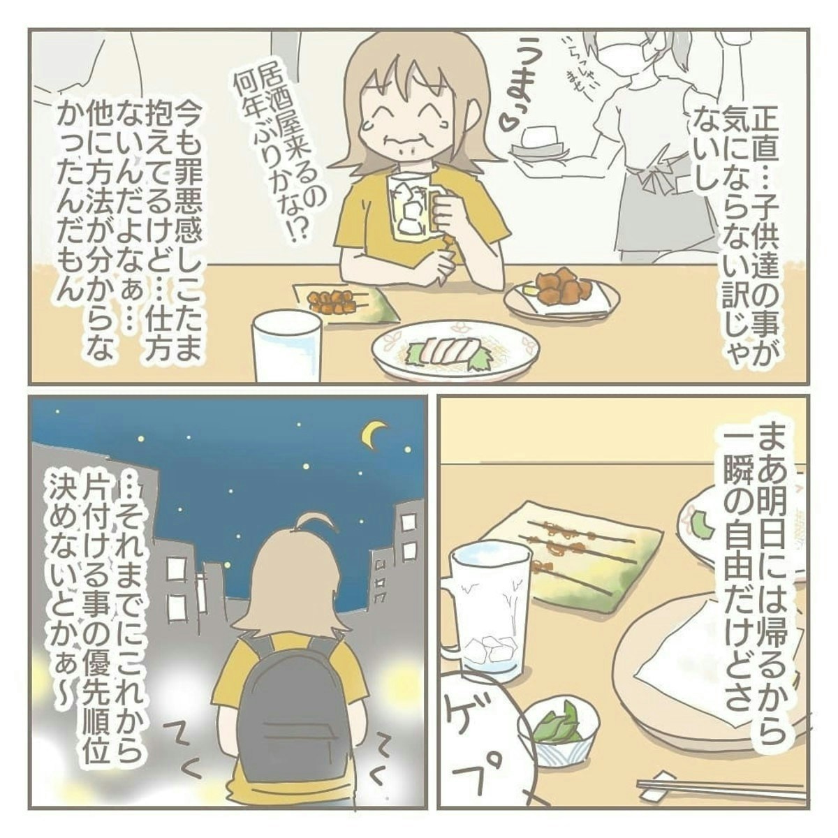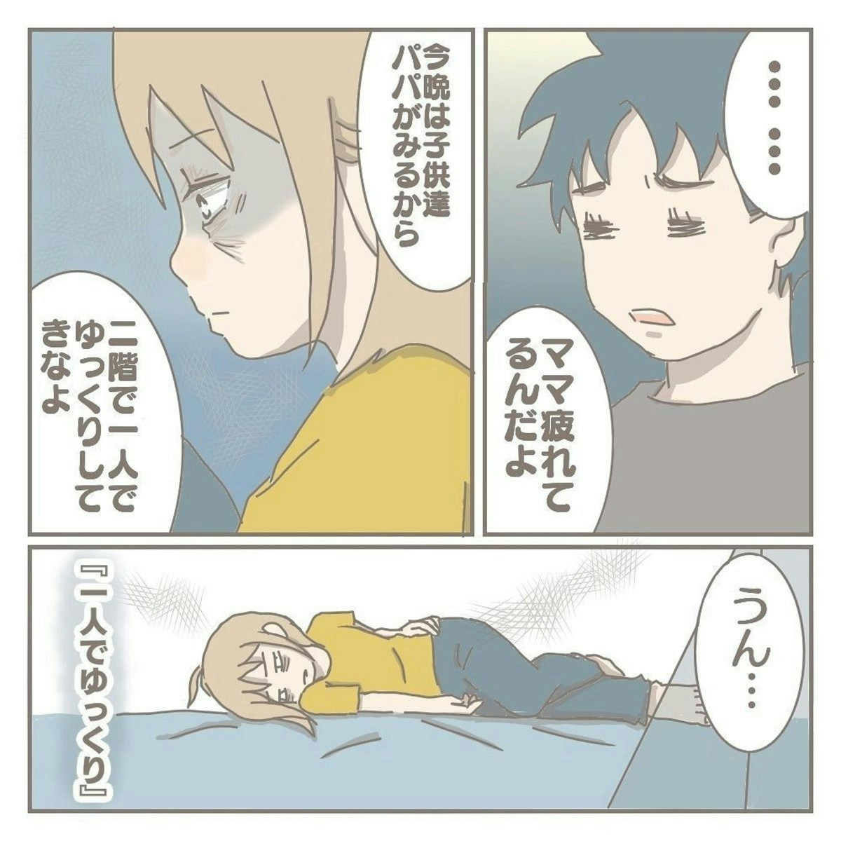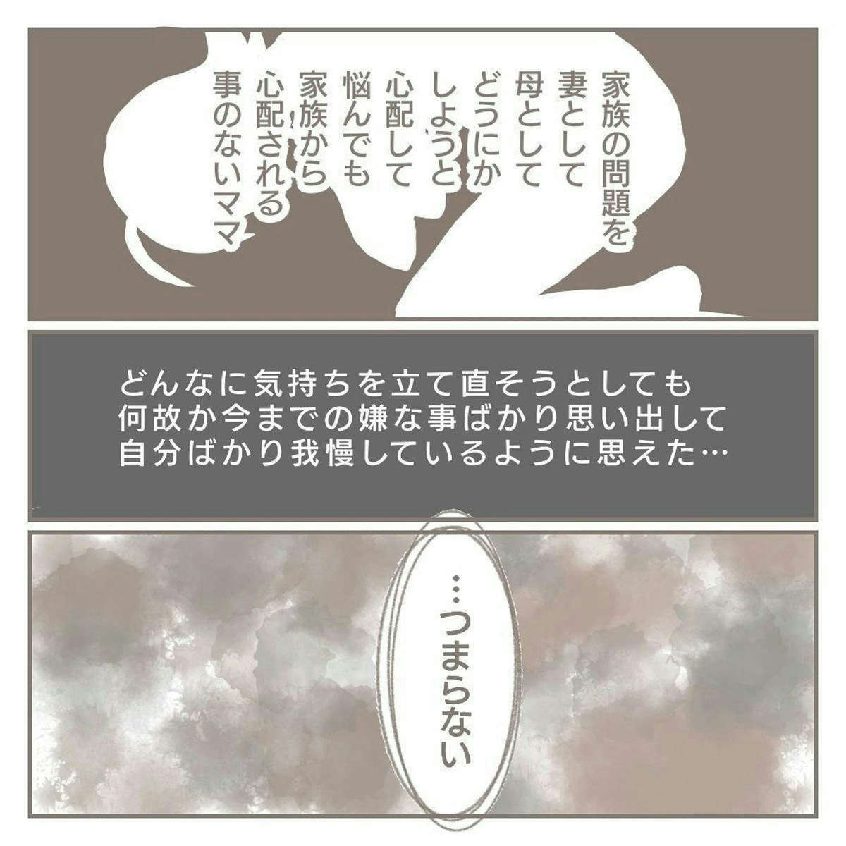 このあと、ヨカさんは何とか気持ちを奮い立たせ、次男を幼稚園へ送ります。ところが、その後も沈んだ気持ちが戻ることはなく、ただただ「ひとりになりたい」という感情でいっぱいに。
