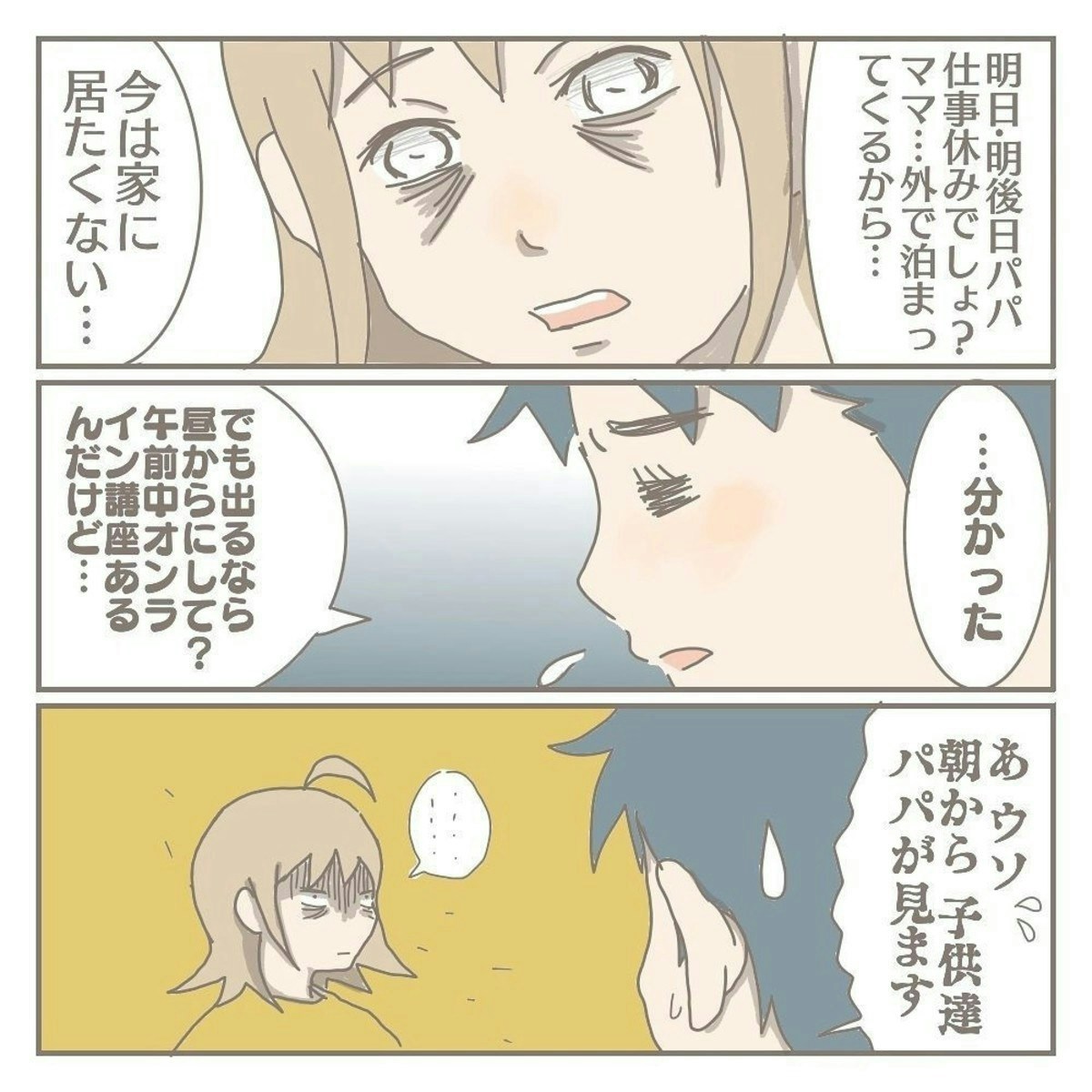「家族のために」という一心で、常にガマンし続けていたヨカさん。ある日の朝、唐突に限界を超えてしまいました。とてもツラい状況ですね…。