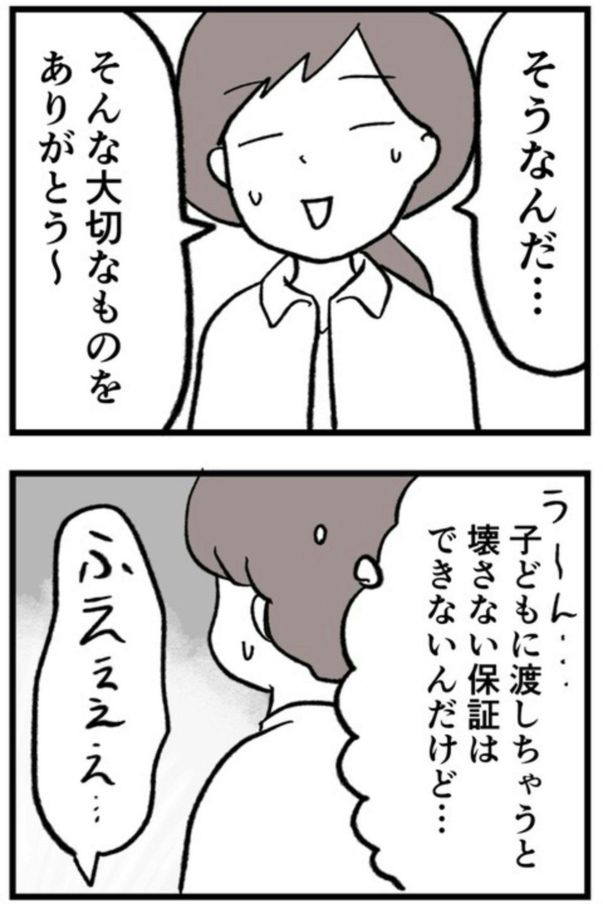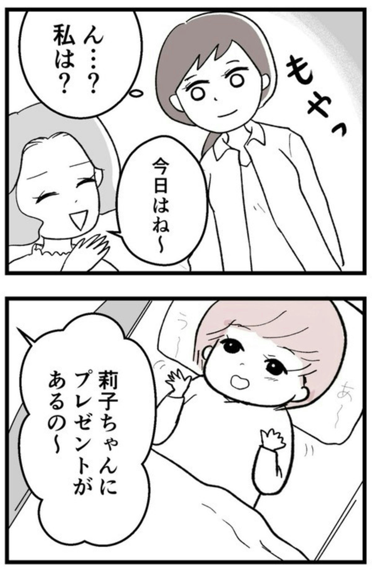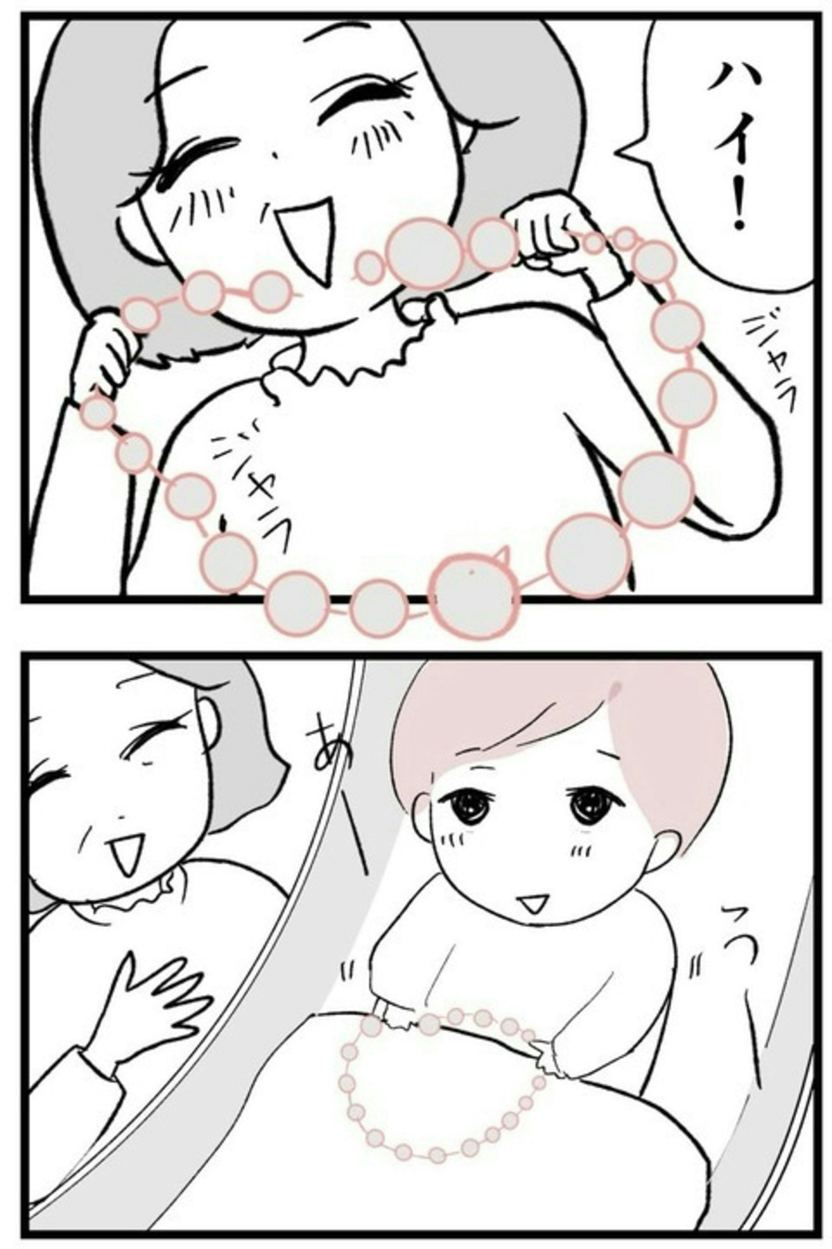 里帰り出産から帰ってきた まゆは、久しぶりに年上の友人・貴美子と再会。ところが、貴美子は赤ちゃんに予想外のプレゼントを手渡したのです…。誤飲の可能性があるものは、ドキッとしますね。