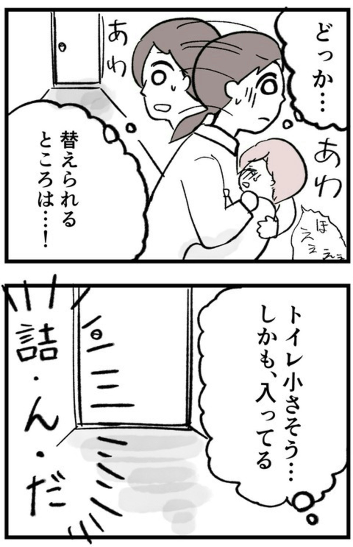 まゆは必死にフォローし、貴美子のご機嫌をうかがいます…。そうこうしているうちに、今度は娘が泣き出してしまいました。しかも、大人向けのおしゃれカフェでは、おむつ交換をする場所はなさそうです…。