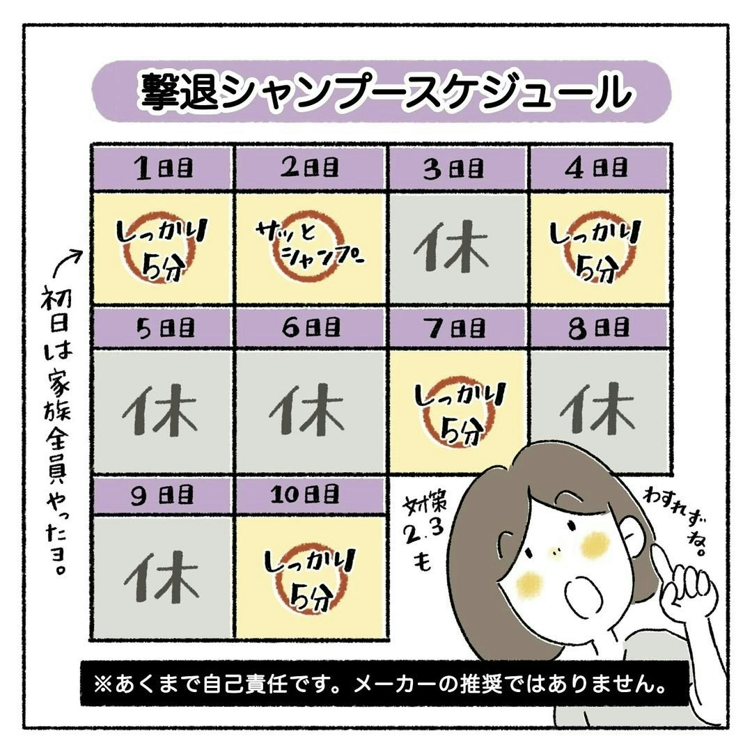 念入りに対策したおかげで、頭シラミを撃退することができました!15日間もの長い闘い、お疲れさまでした。