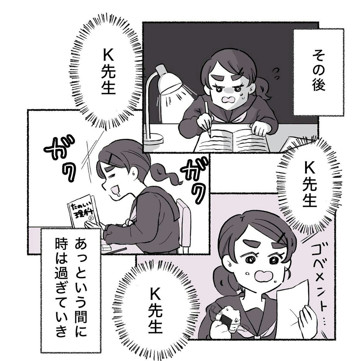 無茶なお願いをしたとき、どうなってしまうかハラハラしましたが、先生は大人の対応を見せてくれました。生徒のやる気を削がないよう、寄り添ってくれる先生との出会いは、貴重ですね。淡い青春の思い出が描かれています。