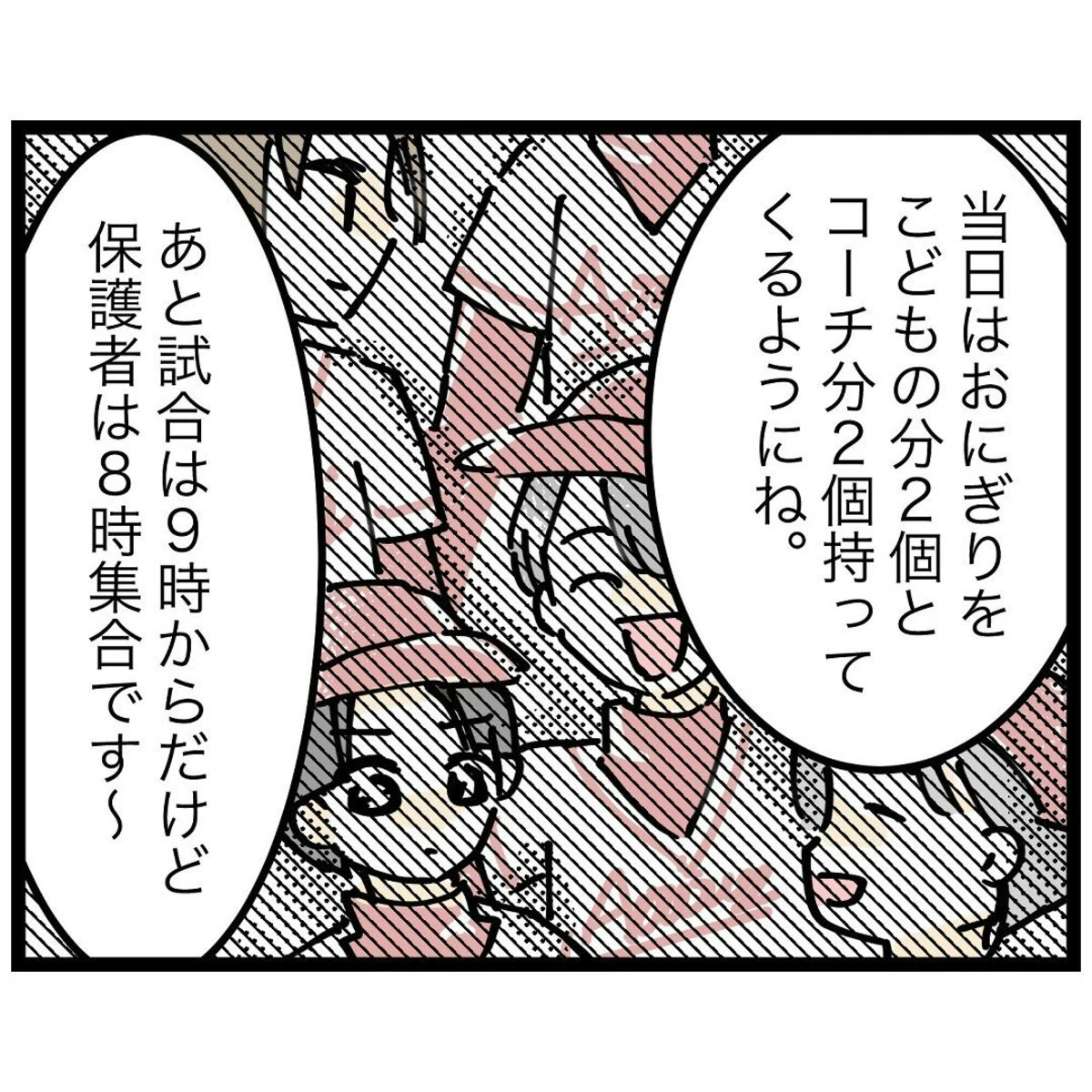 ゴールデンウイークの練習試合は、試合に出ない1年生も参加しなければいけないようです。さらに、コーチ用におにぎりを持参しなくてはいけないなんて…。親の負担が多すぎるように感じます。