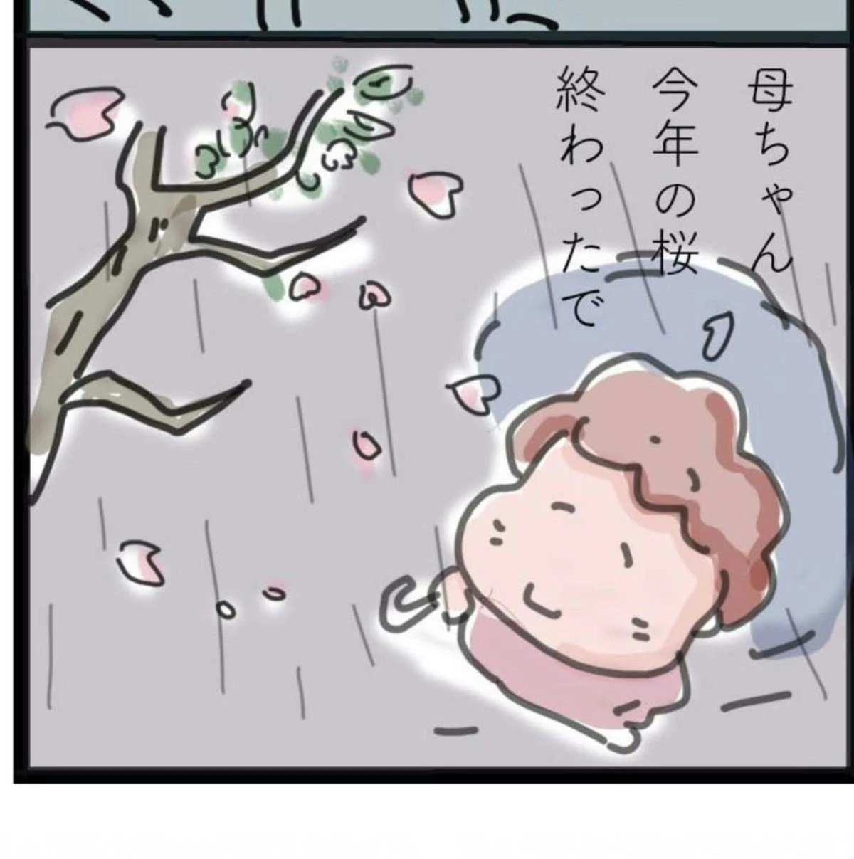 おかん子さんは、不思議な夢を見ました。夢の中で両親に再会し、生前果たせなかったお花見をしたようです。おかん子さんの最後の笑顔が印象的ですね。
