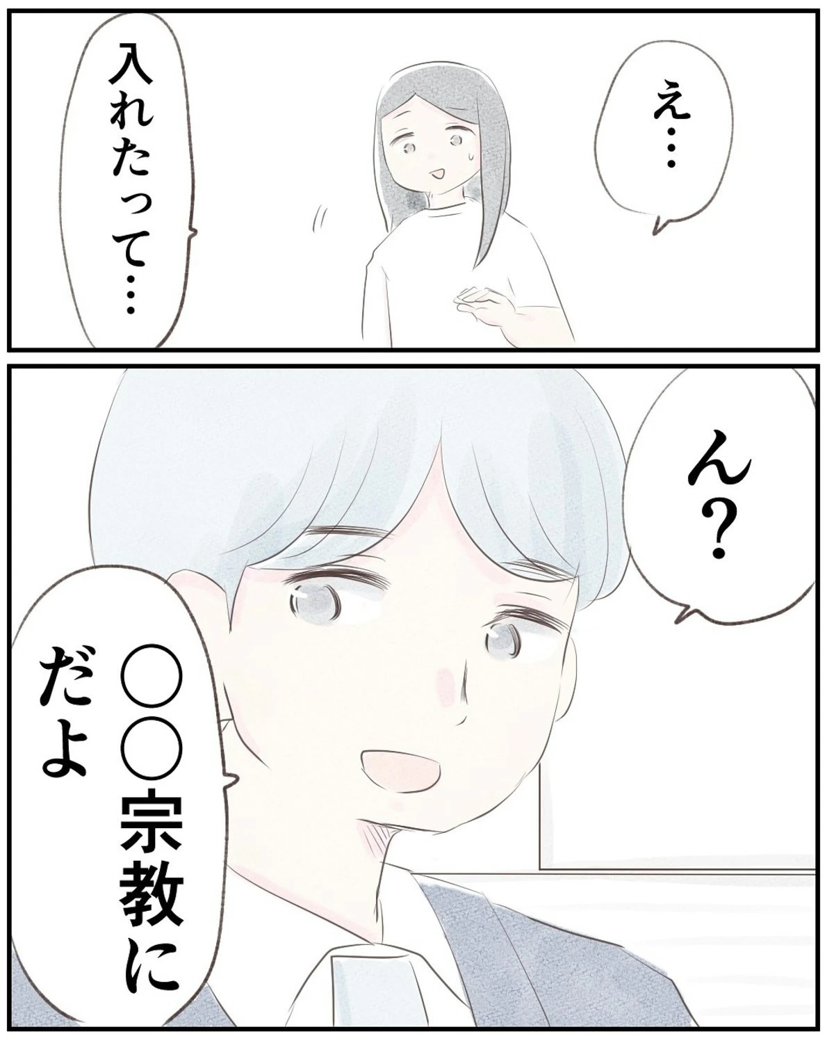 ところが実は、ゆうさんも、いつの間にか入信していたのです。夫に問い詰めると「家族だから当然」と言われ、何も言い返すことができませんでした。