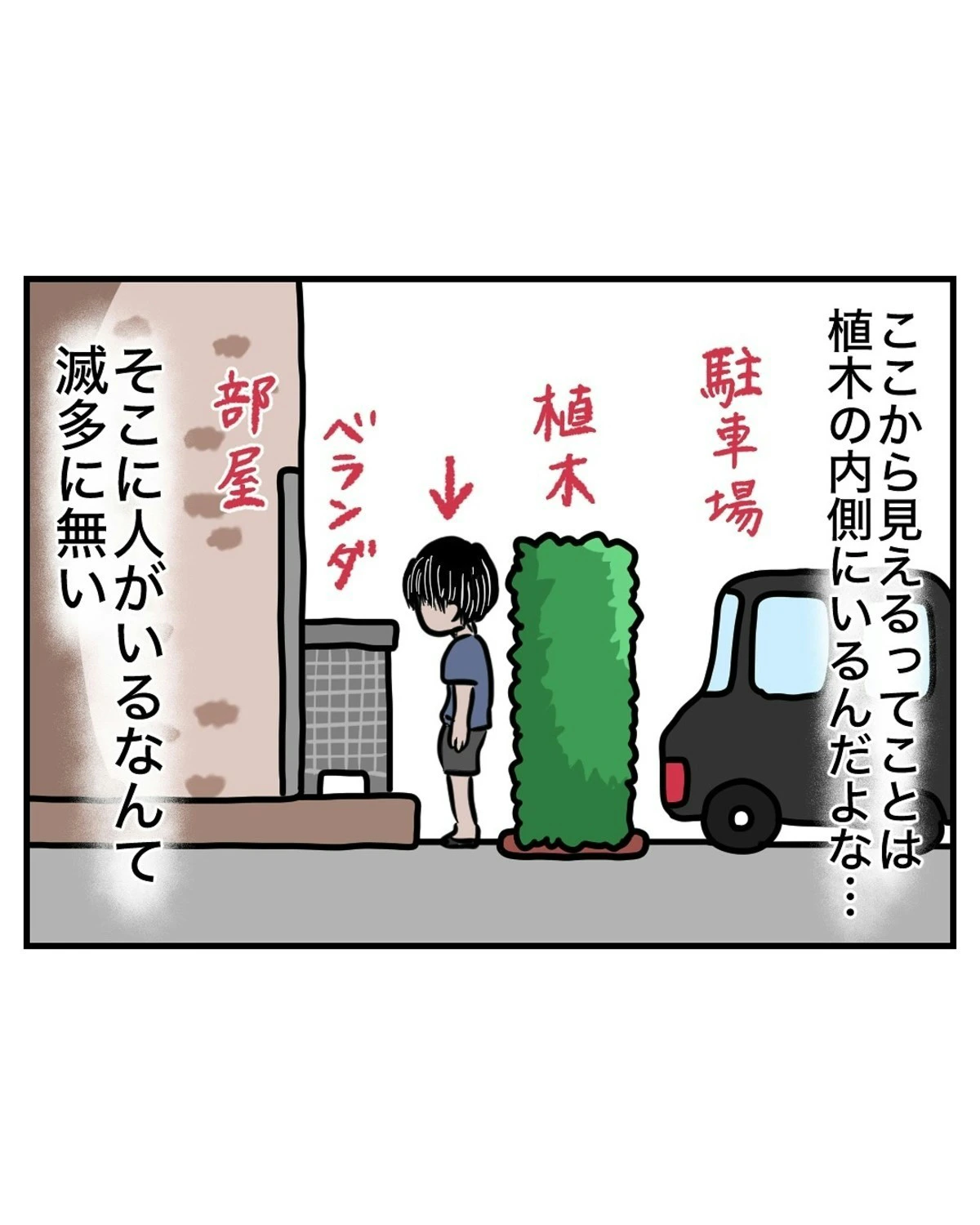 一人暮らしを楽しんでいる大学生の主人公・なっぱさん。窓に取り付けたカーテンの長さが足りませんが、外には植え込みがあるため、大丈夫だと思っていました。