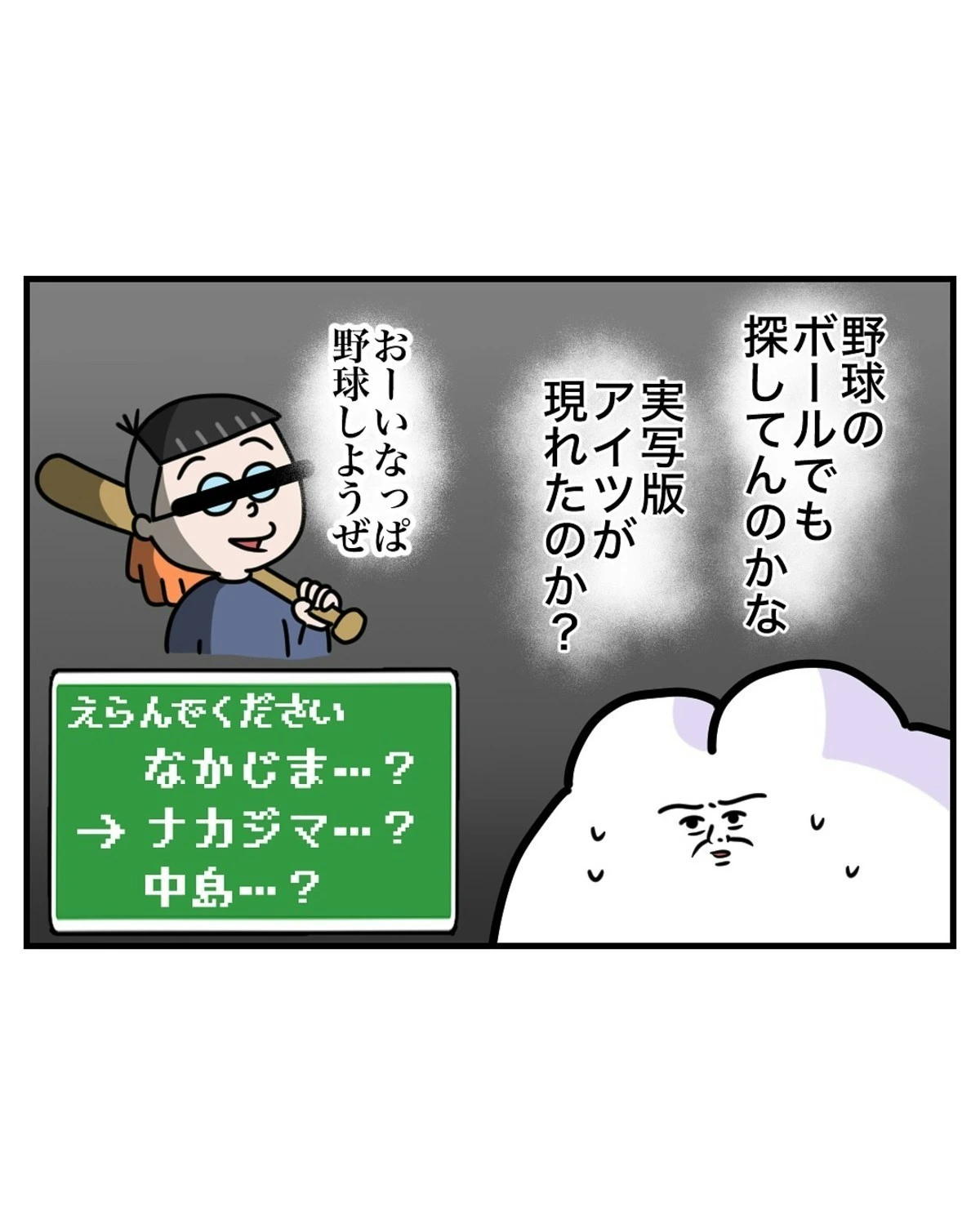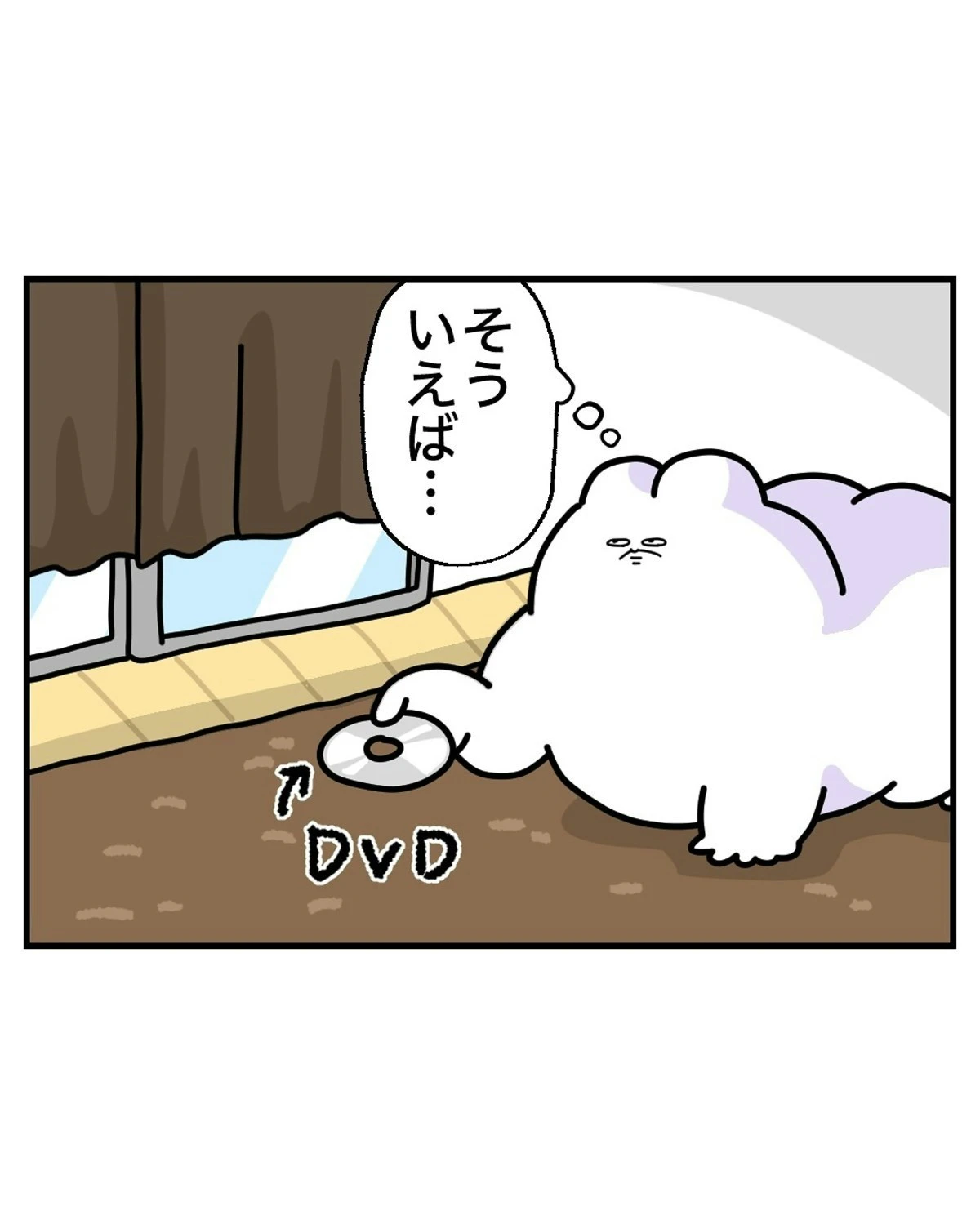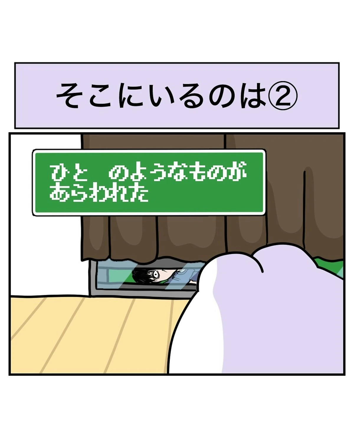 なっぱさんがDVDを観ようとしたとき、ふと窓の外を見ると、人のようなものが横たわりこちらを覗いています…。なっぱさんは、何が起きたのかわからず、外の人物に声をかけてみようと立ち上がります。