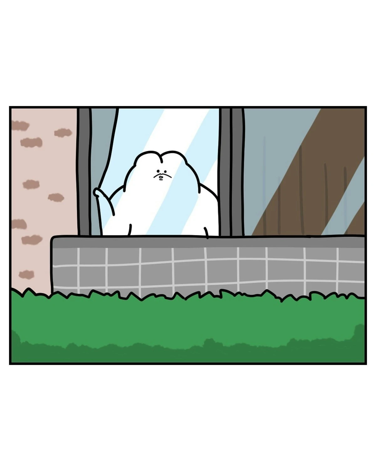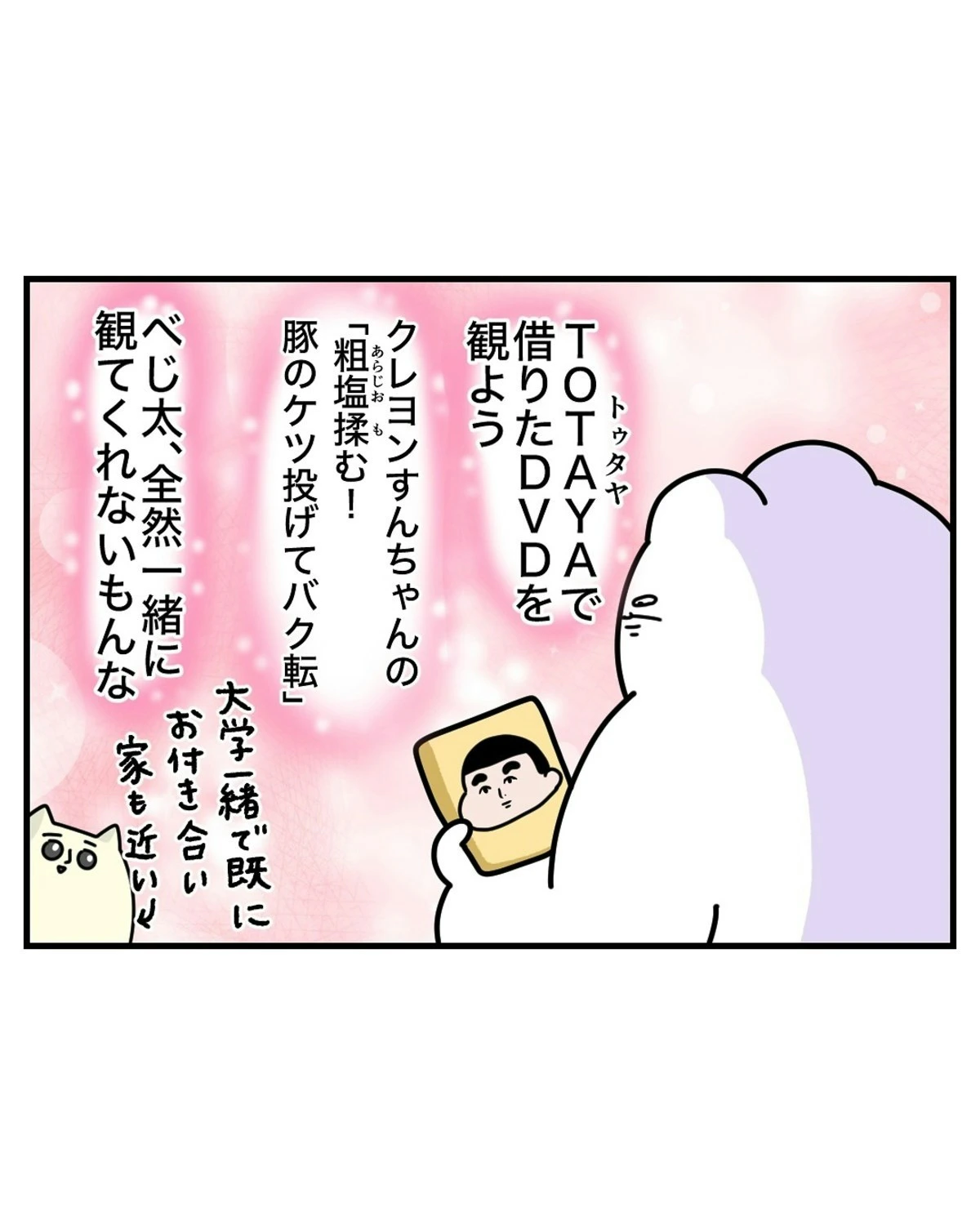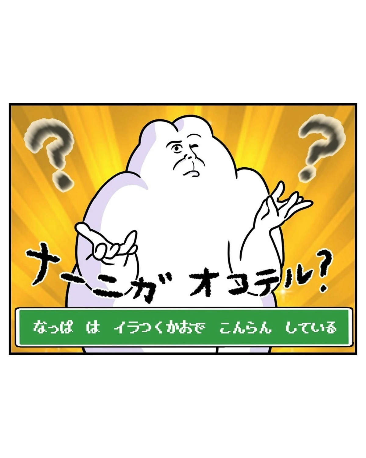 なっぱさんがDVDを観ようとしたとき、ふと窓の外を見ると、人のようなものが横たわりこちらを覗いています…。なっぱさんは、何が起きたのかわからず、外の人物に声をかけてみようと立ち上がります。