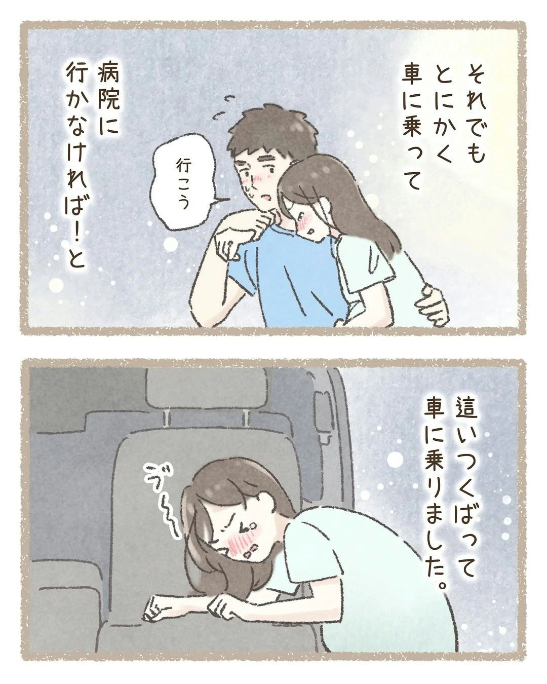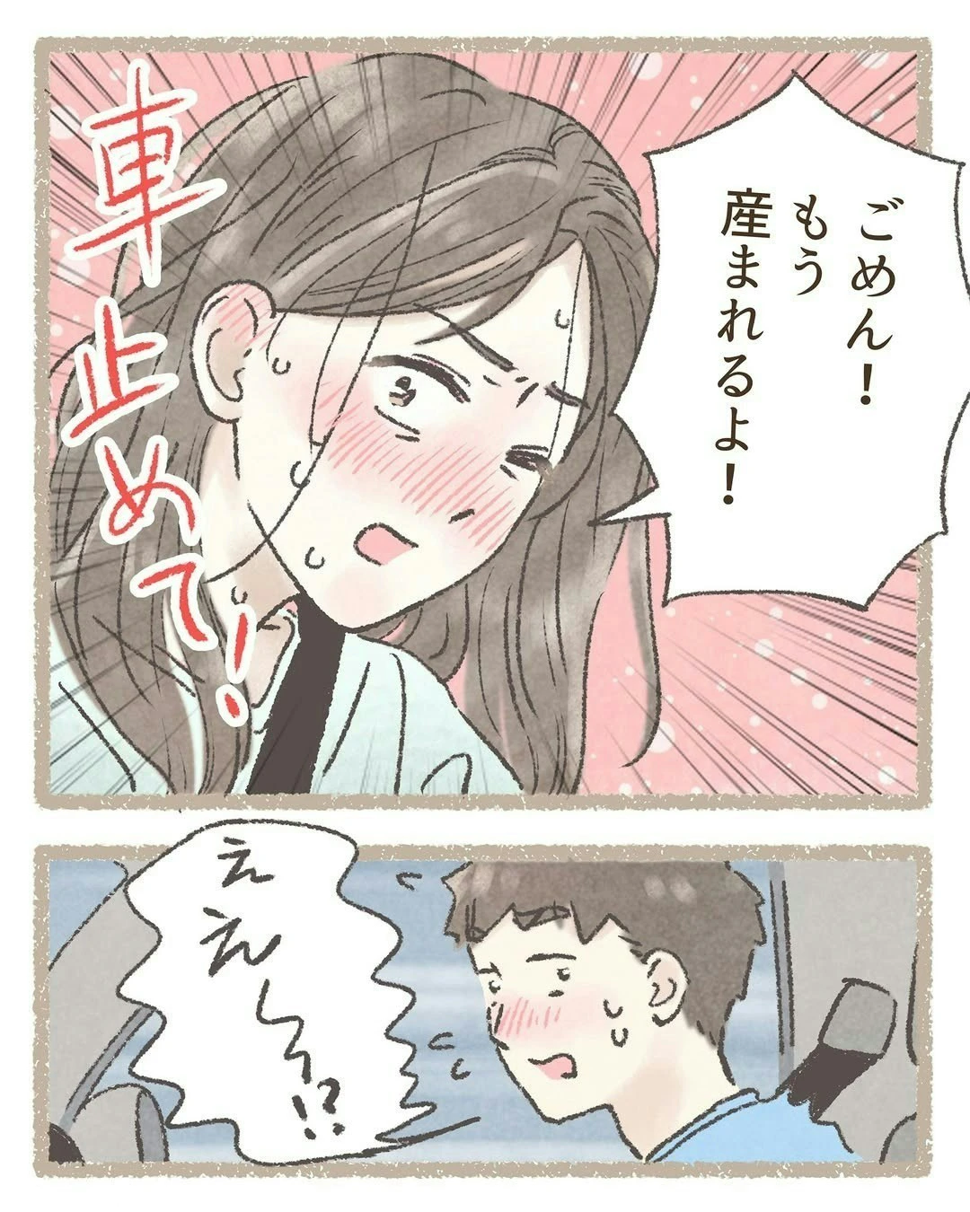 赤ちゃんの頭が、出てきてしまいました…。覚悟を決めた わこさんは、車内での出産を選択します。
