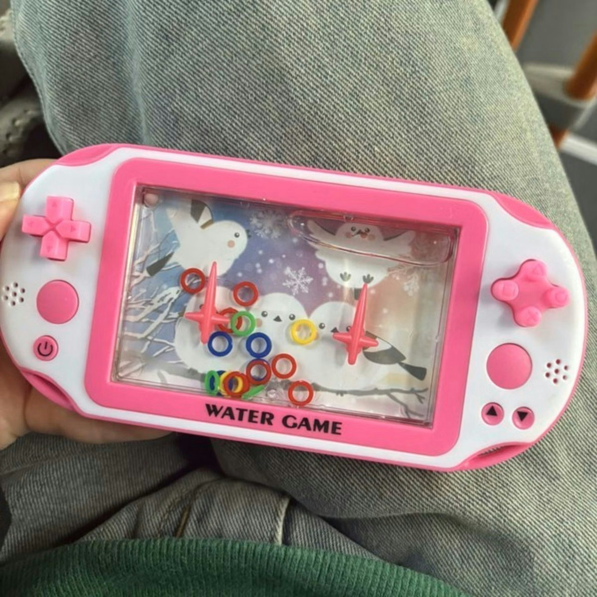 これは…懐かしのアナログゲーム“ウォーターゲーム”ではありませんか!最新型のゲームに対し、アナログゲームを取り出すという投稿に思わず笑ってしまいます。今はこんなにもかわいくてかっこいいウォーターゲームがあるのか…と、その点にも“格の違い”を見せつけられてしまいました。