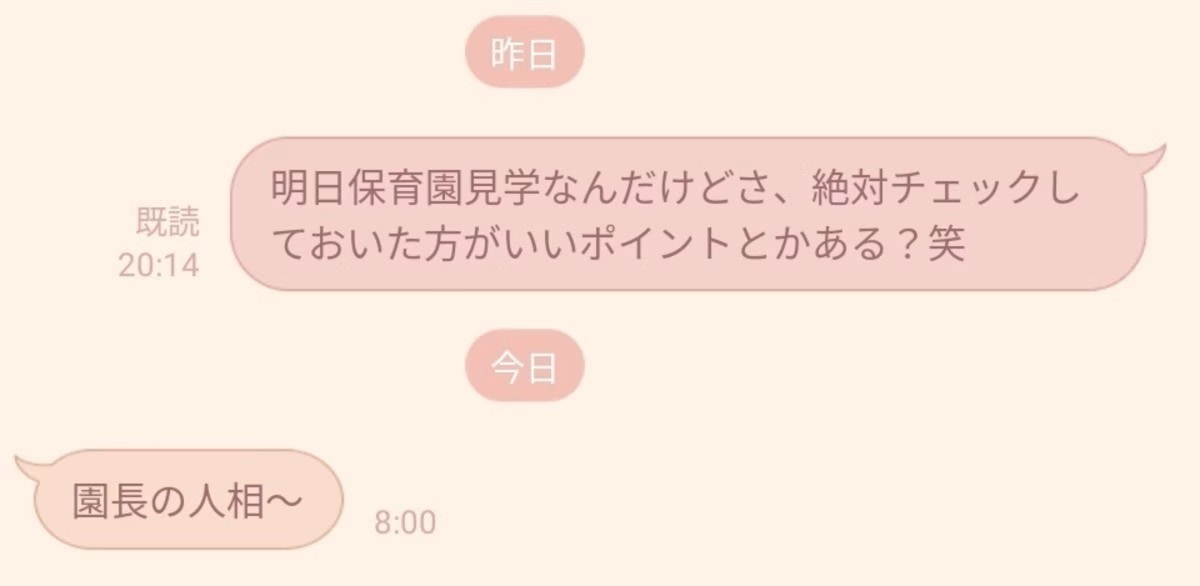 園長の人相という、なんとも予想外な答え。しかし、先生の人柄や考え方は、保育園の雰囲気と重なる部分ですよね。「顔で判断」という意味ではなく、表情や言葉遣い、他の先生への接し方などから、園長先生がどんな方なのかを観察すべきという意見のように伺えます。