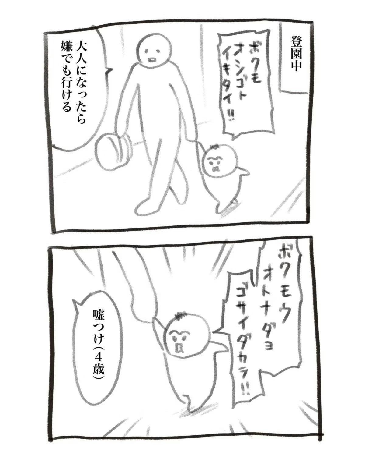 ご紹介するのは園児の息子さんとの日常をXで発信している、犬犬(@inu_eat_inu)さんのエピソードです。子どものころは早く大人になりたかった、という方もいるのではないでしょうか。