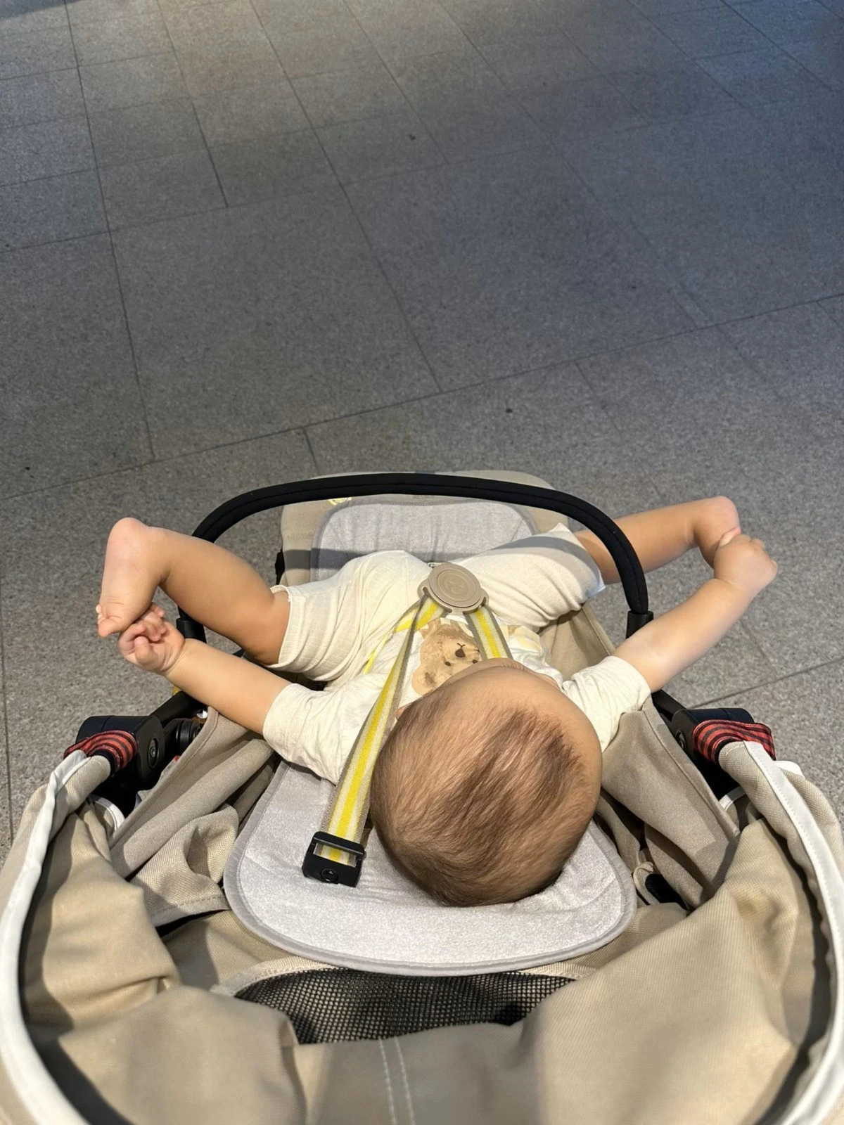 ベビーカーからはみ出すほどにピーンと伸びたかわいいあんよ。改札を通るのはベビーカーだけでもギリギリだと思いますが、このあんよが引っかかるのでは?とちょっと心配になりますよね。