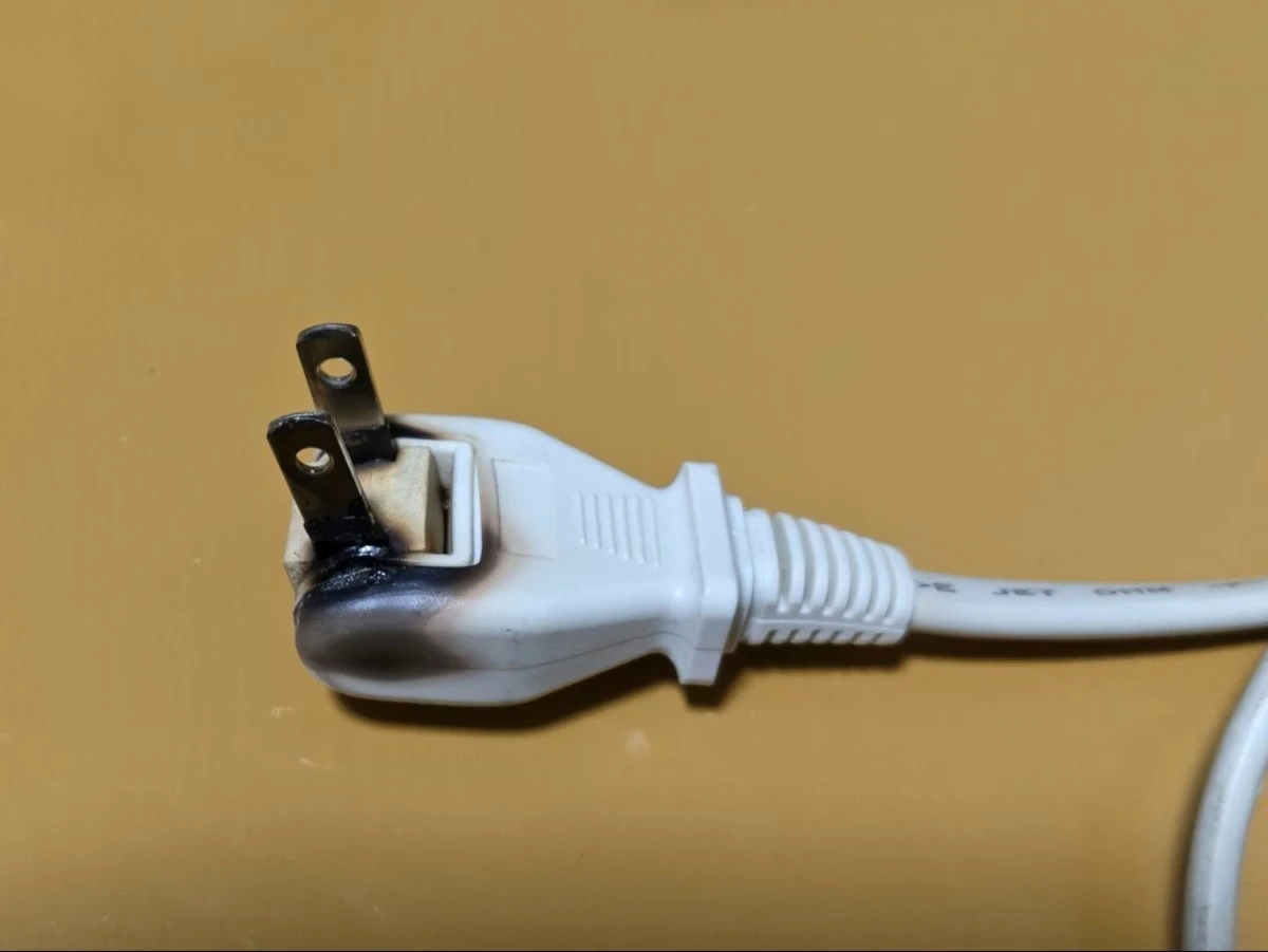父が消費電力1200Wの電気ヒーターに延長コード(!)を使っていたから、コンセントが焦げた。