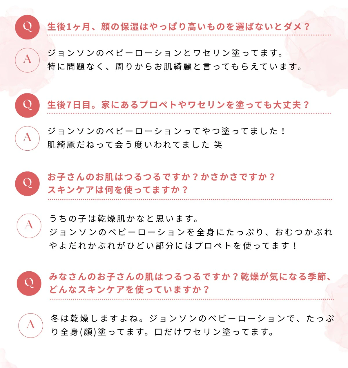 そんなママたちの「どうしたらいい?」という不安に対し、多くの先輩ママたちが「うちはこれを使ってるよ!」と名前を挙げたのが、ジョンソン®ベビーローションでした。