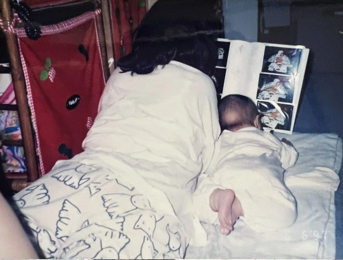 1枚目は母と娘、2枚目は娘と孫の写真です。同じように寝転がってアルバムを眺める姿がそっくりですよね。まさに親から子へ、そしてまたその子どもに、愛が受け継がれる様子です。