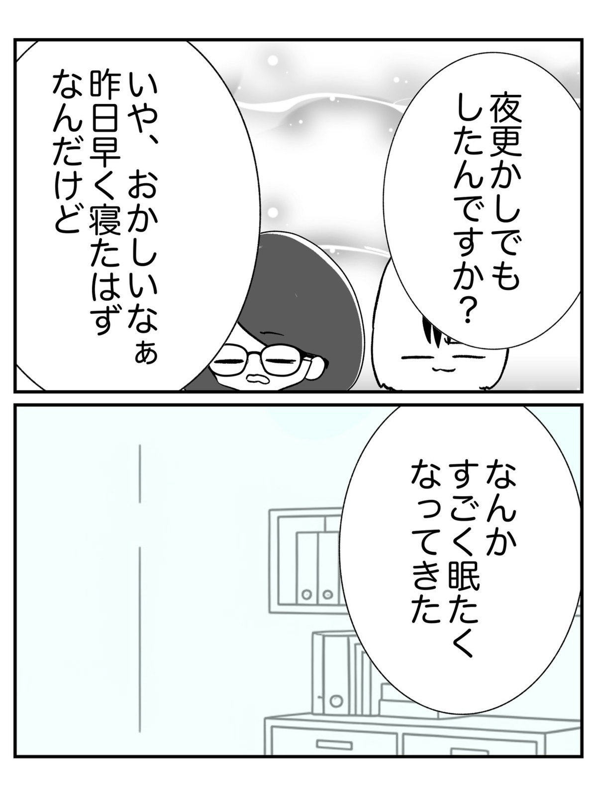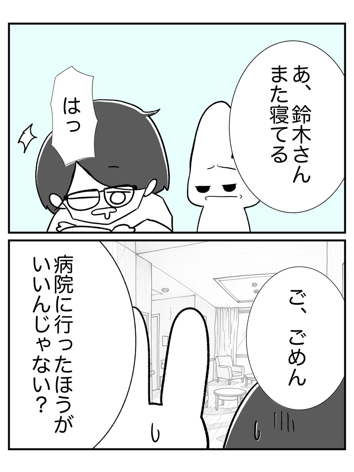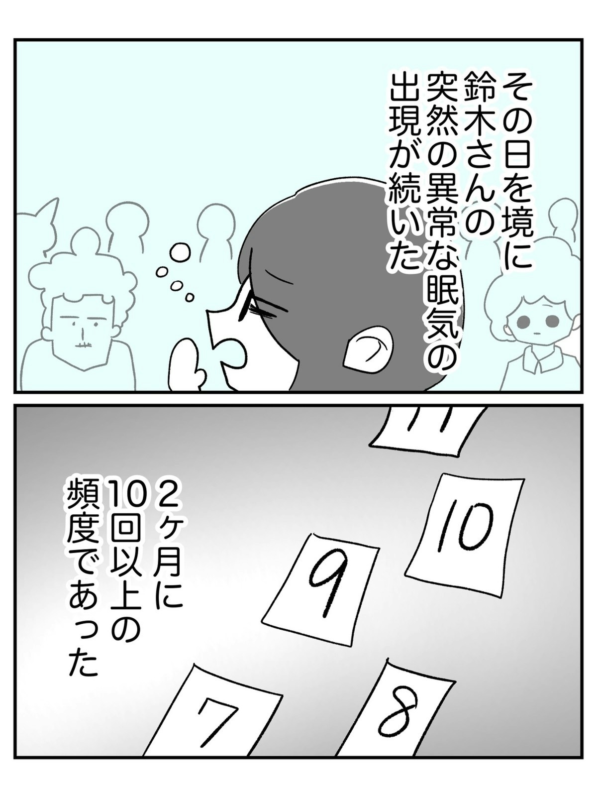 仕事中に急な眠気に襲われた介護士・田中さんが事故死してからも、施設の職員は同施設での仕事を続けていました。中でも鈴木さんという女性は明るい性格で周囲からも人気があります。しかし、この鈴木さんにも異様な眠気の症状が現れて…。
