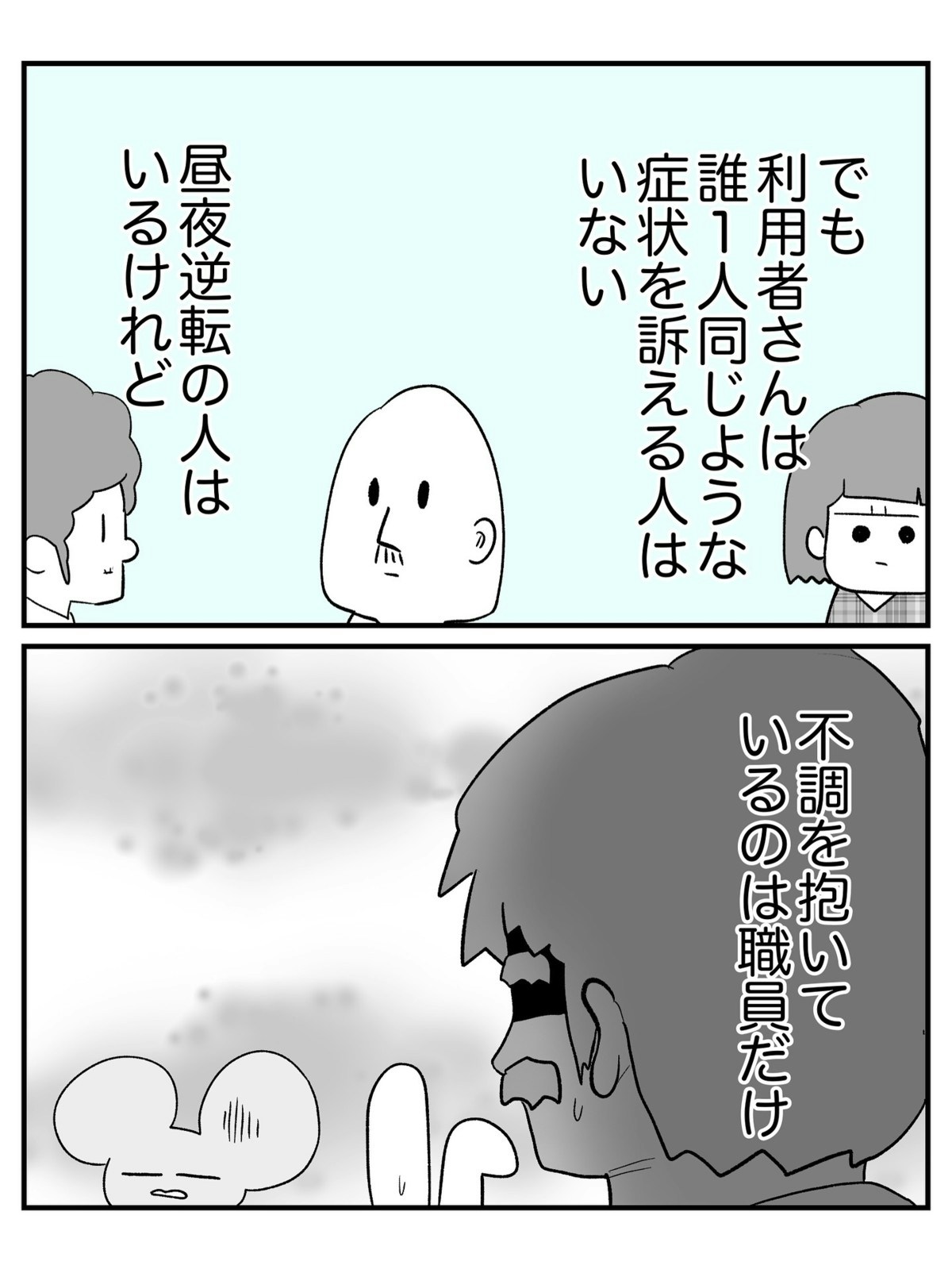 仕事中に急な眠気に襲われた介護士・田中さんが事故死して以降、職員が異様な眠気に襲われることが多くなった、とある老人ホーム。ただ、このときは誰も人為的に眠気が引き起こされていることには気づいていませんでした。