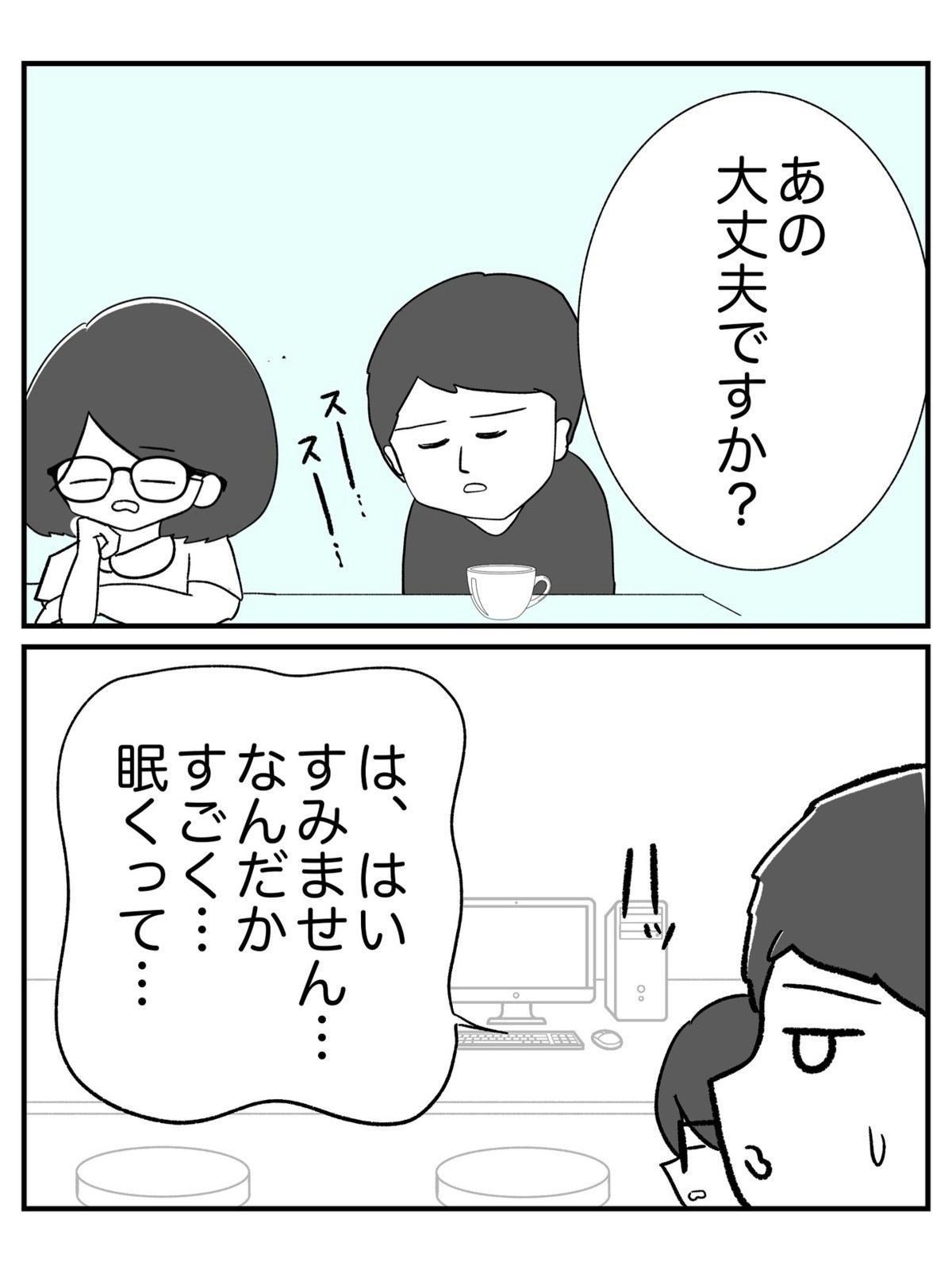 仕事中に急な眠気に襲われた介護士・田中さんが事故死して以降、職員が異様な眠気に襲われることが多くなった、とある老人ホーム。