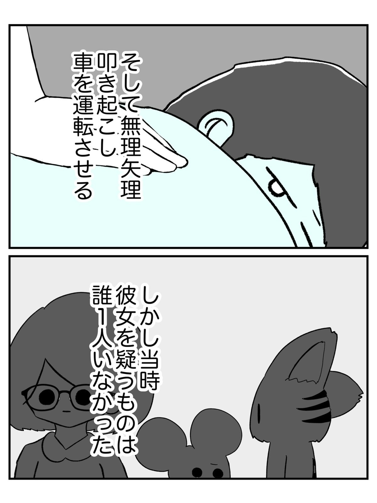 職員たちを襲っていた異様な睡魔は、アイさんのしわざでした。睡眠薬を飲ませて車を運転させるなんて、いたずらで済まされるものではありません。