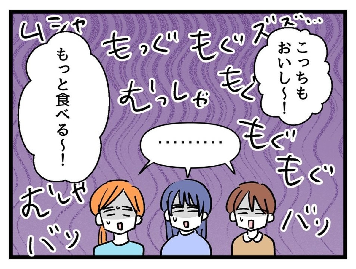 親子で好き勝手にお菓子を食べているのを見たママ友たちは唖然とします。たまみたちがどういう人なのか知らずに呼んだことで、思わぬ一面を目の当たりにしてしまいました。このまま毎週来るようになってしまったら、お菓子がいくらあっても足りなくなりそうです。