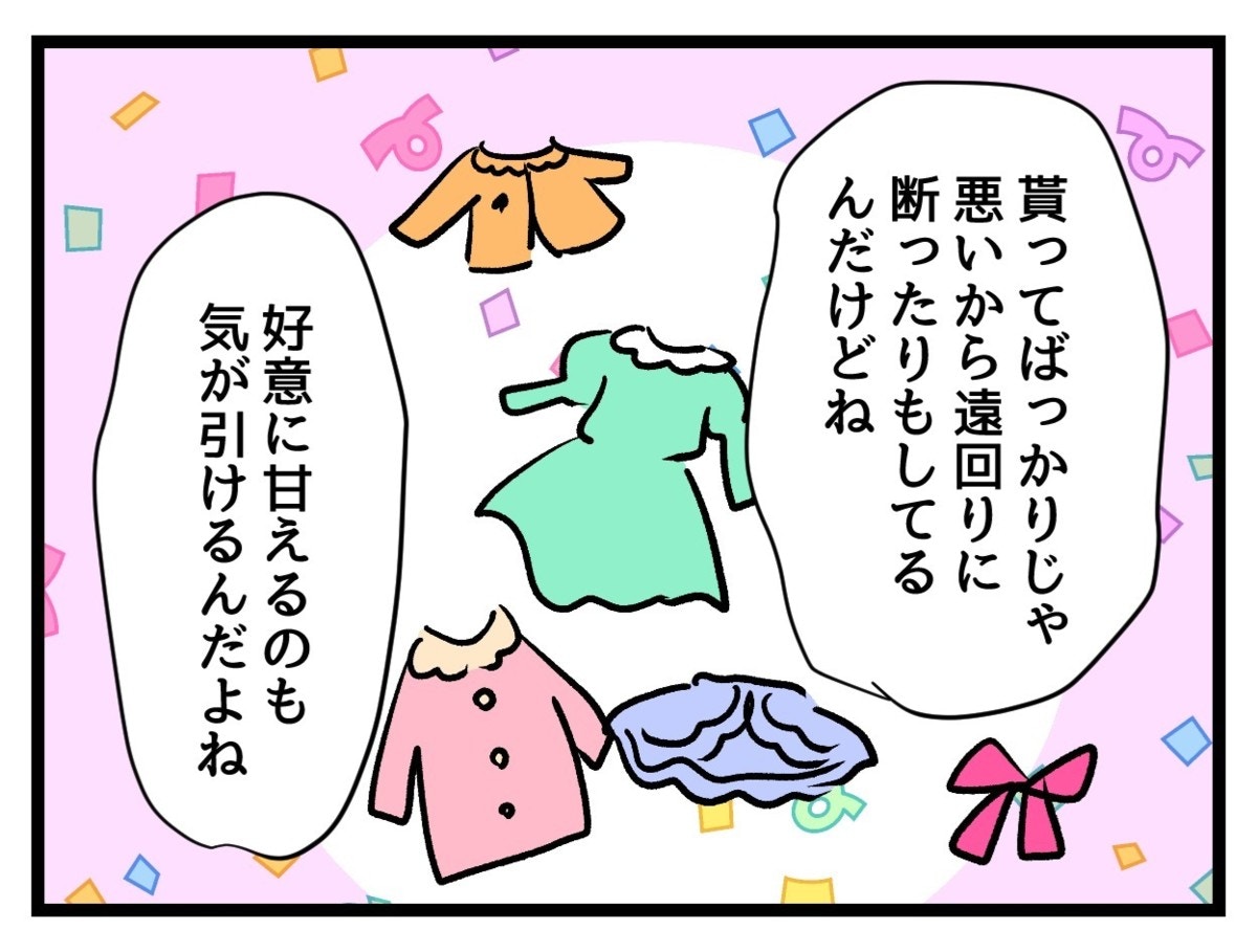 お下がりはありがたいものの義理の姉という関係性から、いいものをもらってばかりで申し訳ないという気持ちがあるようです。