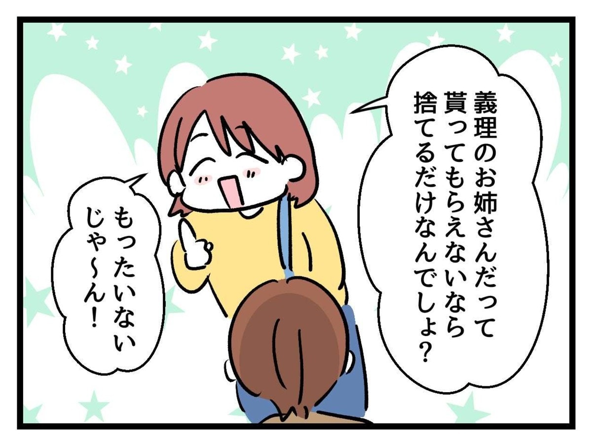 つむぎちゃんママの義姉からお下がりをもらいたいというたまみ。これにはつむぎちゃんママも難色を示します。