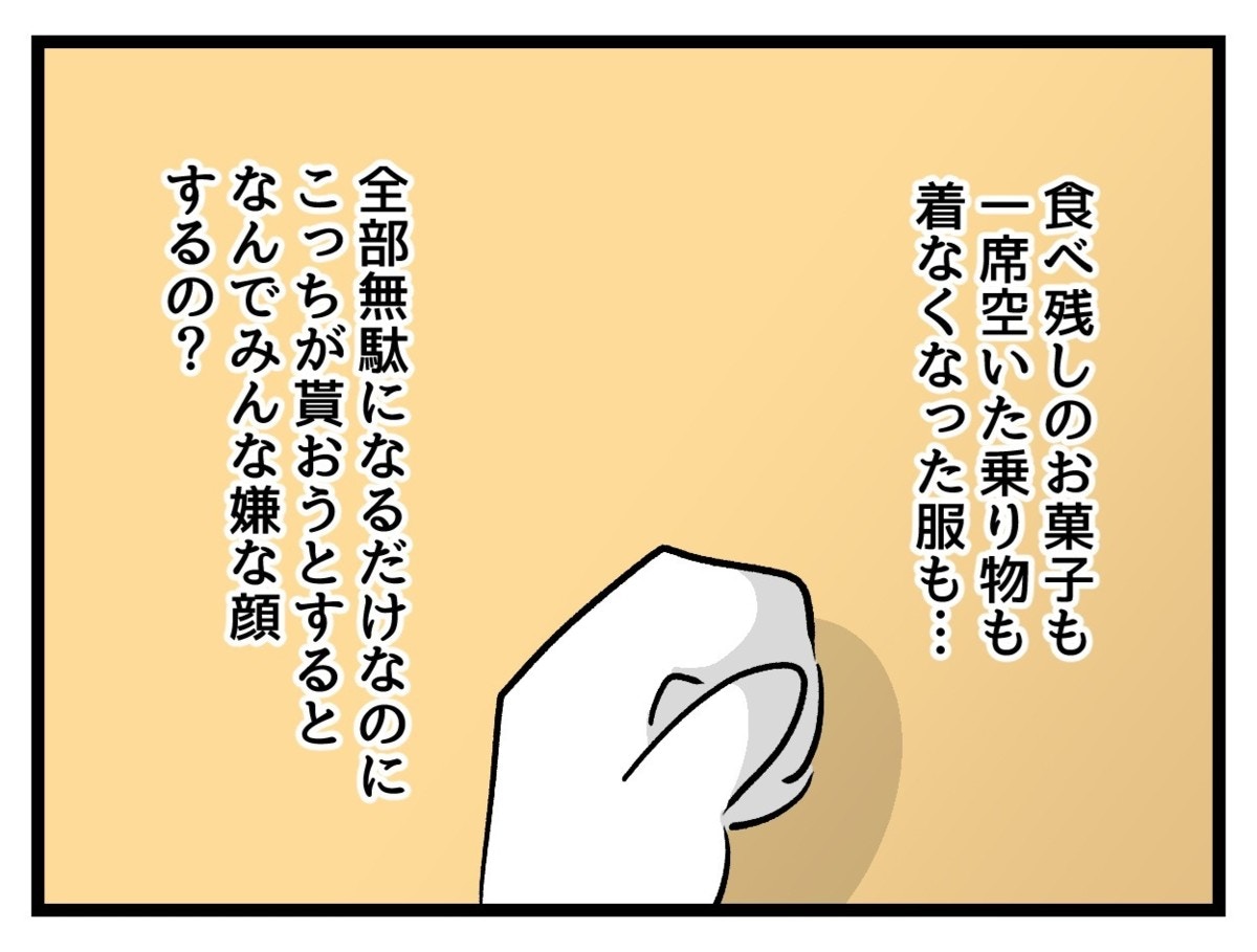 義姉に事情を話したとしても、すんなりお下がりをくれるとは限りませんよね。むしろ気を悪くしてしまうかもしれません。あまったらもったいないから、捨てるのがもったいないからもらっているだけなのに、周りに嫌な顔をされることに納得がいかないたまみ。