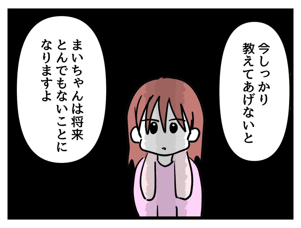 まいはいつもたまみの姿を見ていたために、なんでももらっていいのだと信じ、善悪の分別がつかなくなっていました。友人のママや夫に言われ、自分の過ちと向き合うことにしたたまみ。今まで母親の言うことが正しいと信じ生きてきたたまみにとって、考え方を変えることはそう簡単ではありません。今までの自分を全否定されるようで、受け入れるのはつらいことでしょう。しかし、娘のため、これから生まれてくる子のためにも変わる決意をしました。