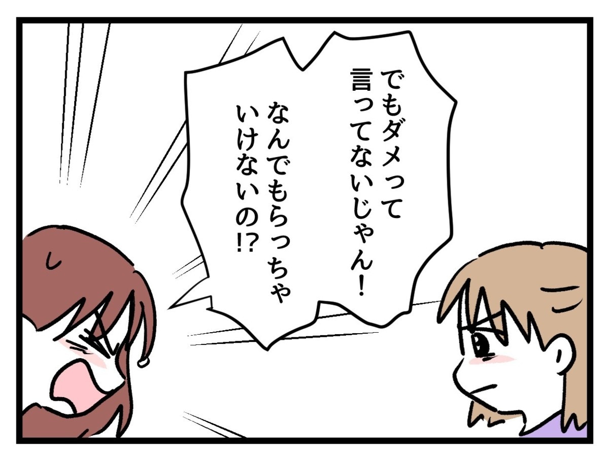 自分は「ちょうだい」と言ってもらったから間違っていない、いやだと言わなかったからもらってもいいと、まいは本気で思っているようです。