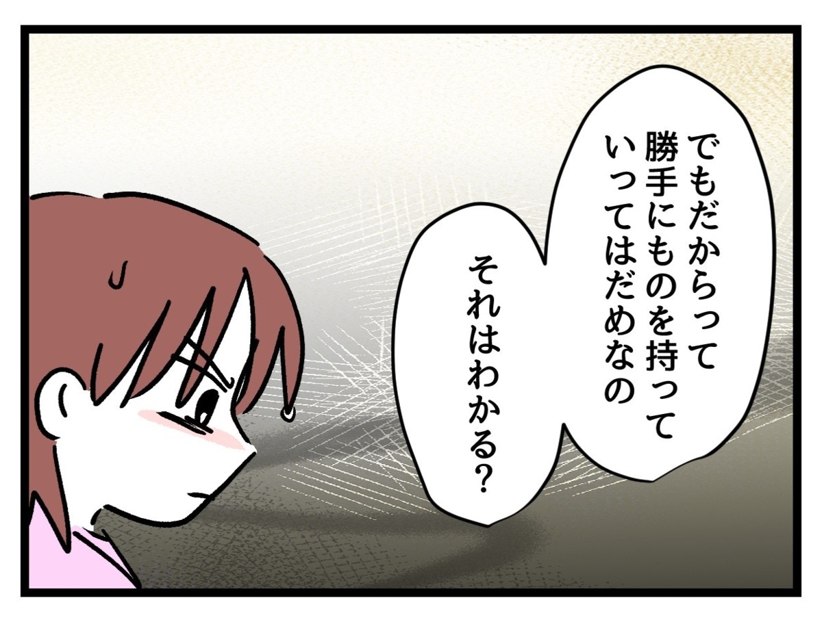 ゆいかがきちんと断らなかったことも原因だと認めつつ、勝手に持って帰ることは悪いことだと話をするゆいかの母親。まいに伝わるでしょうか…。