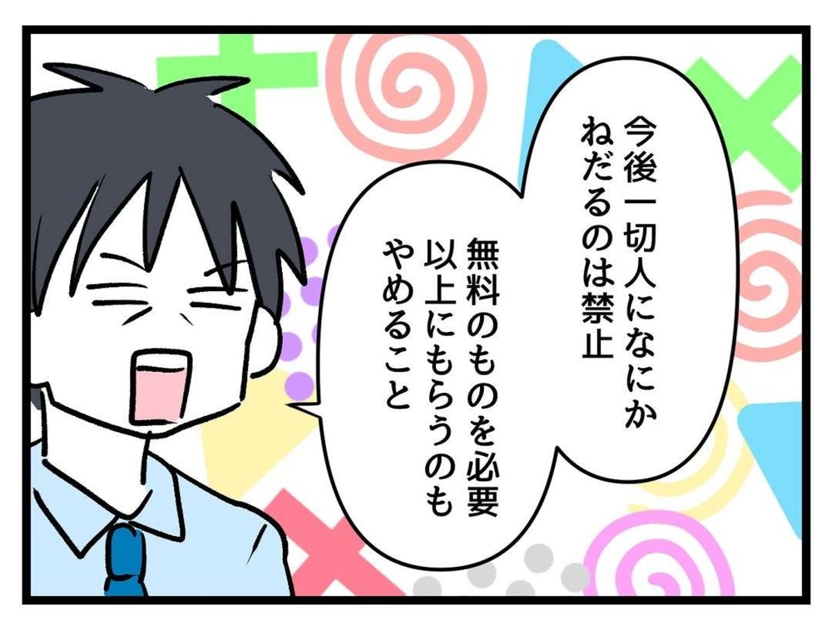 夫は人にものをねだったり無料のものをやたらともらうのをやめるようたまみに伝えました。これは基本的なことですね。