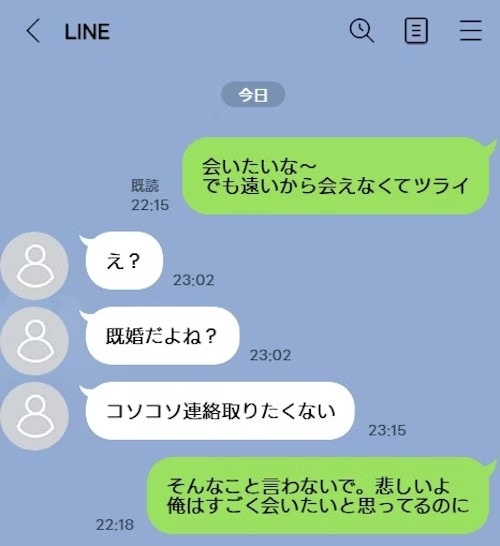 幸い会える距離でもなく相手の子は既婚者とコソコソ連絡したくないとLINEを最後は断ってました。(女の子の元カレが既婚者とコソコソ連絡取っていて嫌な思いしたからだとか)