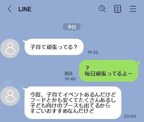 それは子育てについて「がんばってる?」という言葉が冒頭にあり、上から見られていると感じたから。そして久々の連絡にもかかわらず、内容がイベント告知だったから…。これは「イベントへの動員」に思えてがっかりしてしまうかもしれませんね。