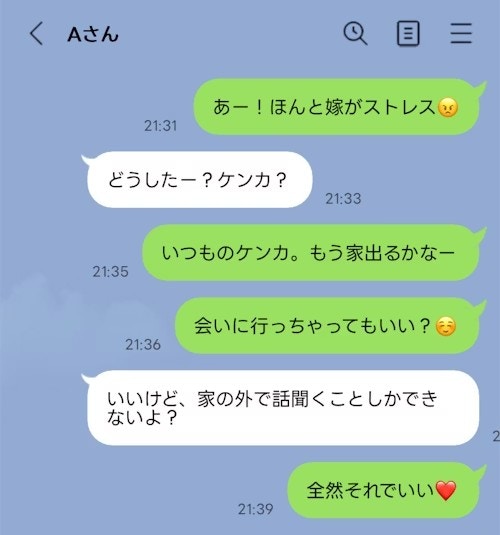 ・私と喧嘩して家出したその日の夜に女に話を聞いてもらいに女の家に行く