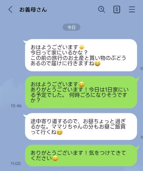 義母がお土産を用意する限りあちらのペースで会わなきゃいけないので、今後わざわざ要らないということをやんわり伝えて