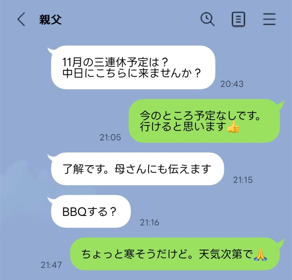 また、義父が連休しか変わったことをしたくないタイプの人のようで