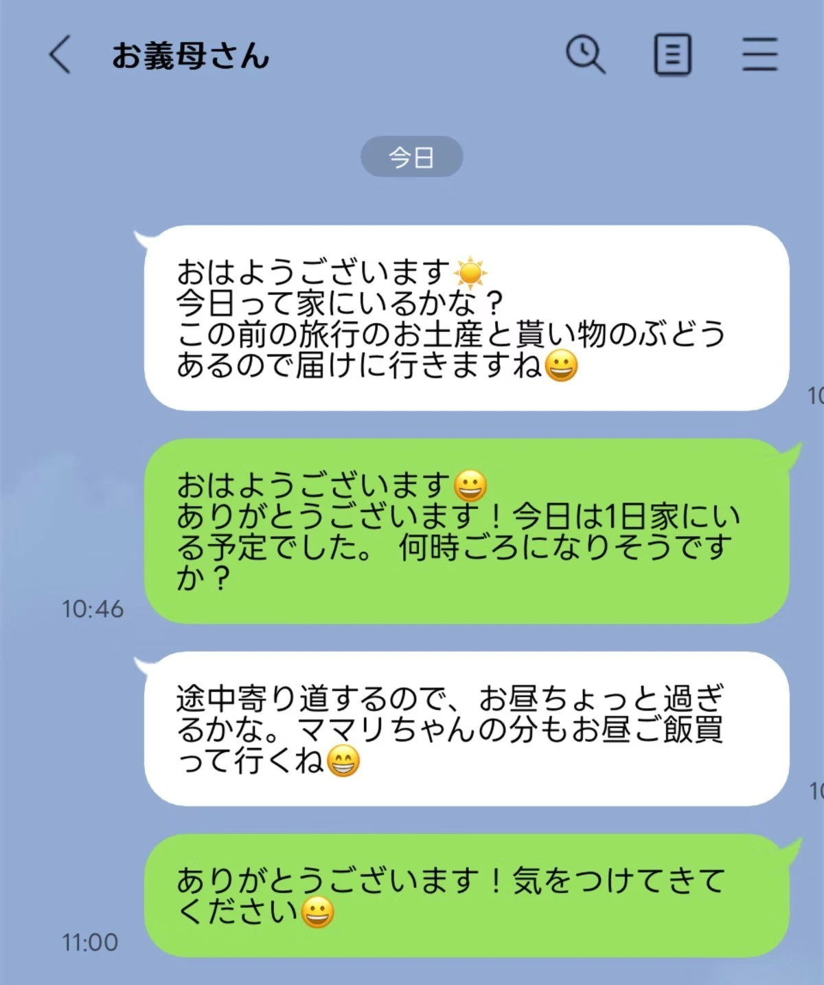 11月の連休も、わたしが10月実家に帰ったことを聞いて 羨ましい会いたいと決まりました...(義母が旦那へしょっちゅうLINEしてるので雑談で旦那もなんでも言ってしまうんです💦実家に行ってることとか筒抜けです、、)
