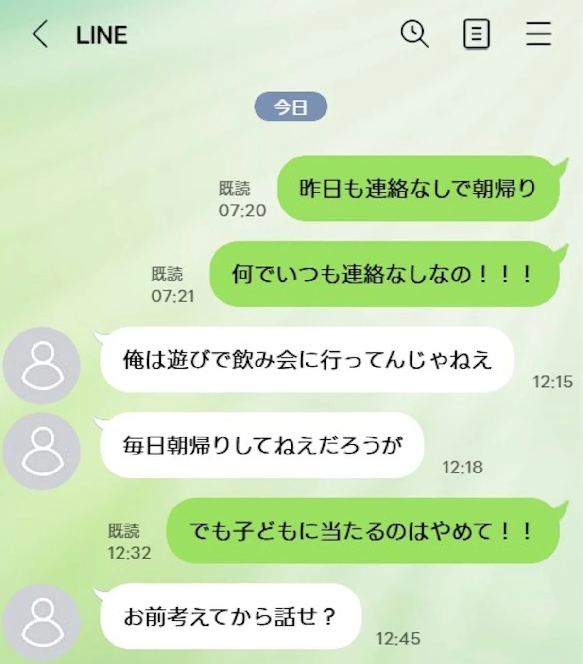 ・遊びで飲んでるわけじゃない、死ぬ気で働いてるんだ。子どものこと俺は何もしてないか?毎日朝帰りしてるか?考えてから物言え