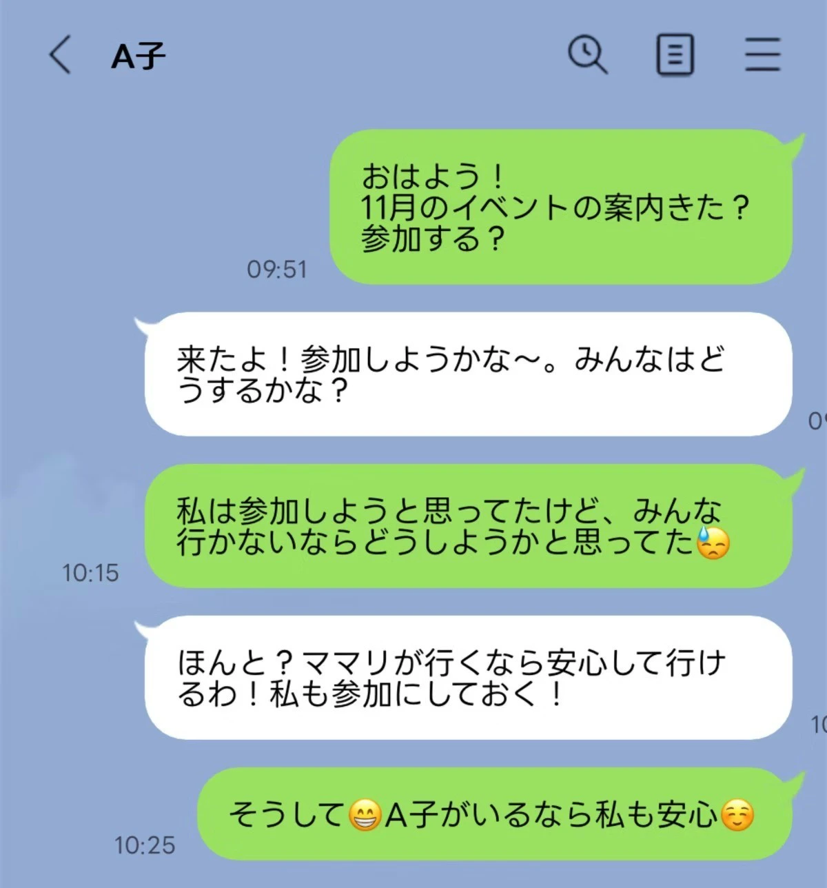 私「私も参加しようかな〜と思ってたけど、みんな行かないならどうしようかと思ってた!」