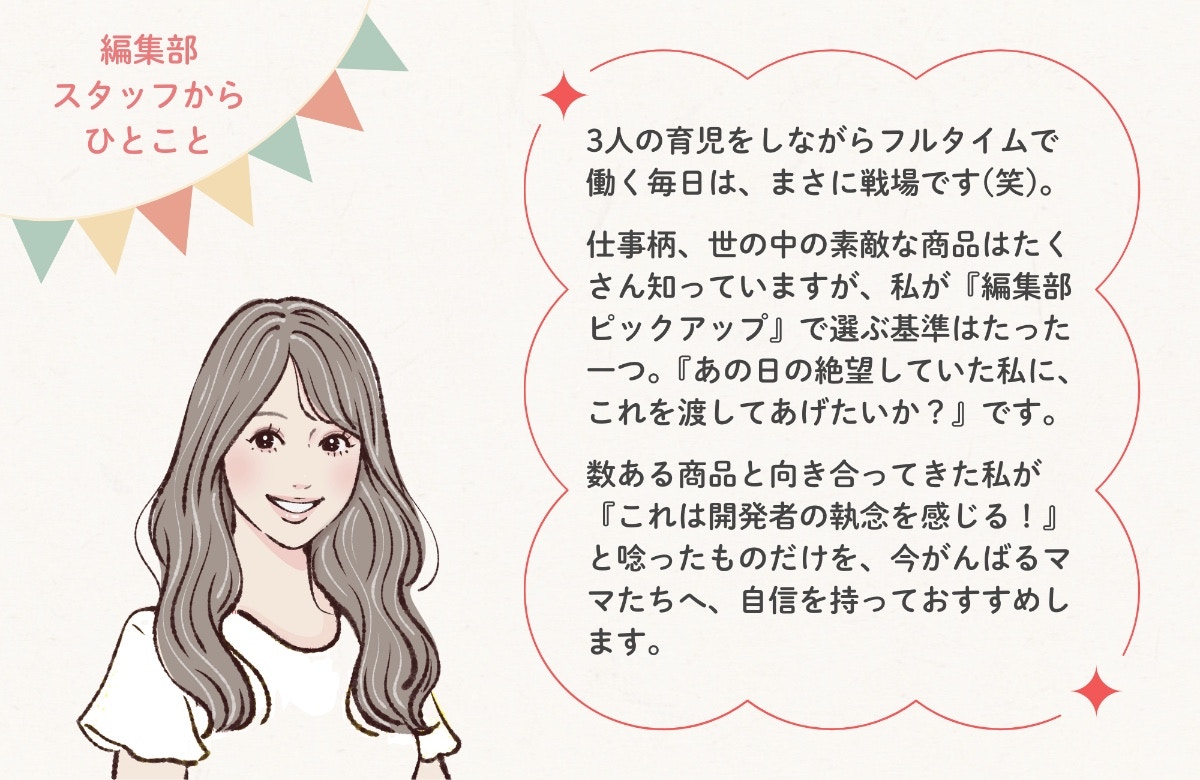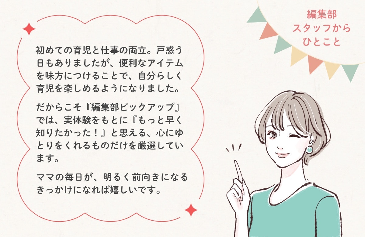 ママリ口コミ大賞という「みんなの安心」に加えて、ママリ編集部ピックアップが、がんばるママの手助けになりますように。