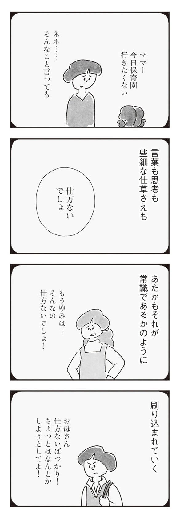 生きていくのは、選択と決断の連続です。その1つひとつを誤れば、犠牲になるのは自分ではなく娘だと思うと、胸が痛むほど辛くなることがあります。ゆみさん自身も、母親から「仕方ない」という言葉を当たり前のように言われながら育ってきました。