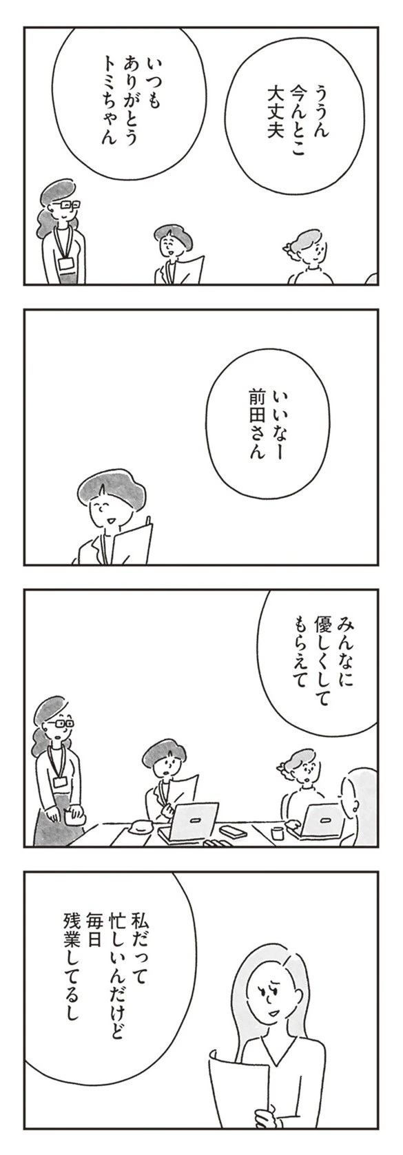 今回チクリと言ってきた大島さんですが、意地悪な人ではありません。思ったことをそのまま口にするタイプで、過去にはゆみさんを助けてくれたこともあります。だからこそ、あの一言も悪気はなく、ただの素直な意見でした。
